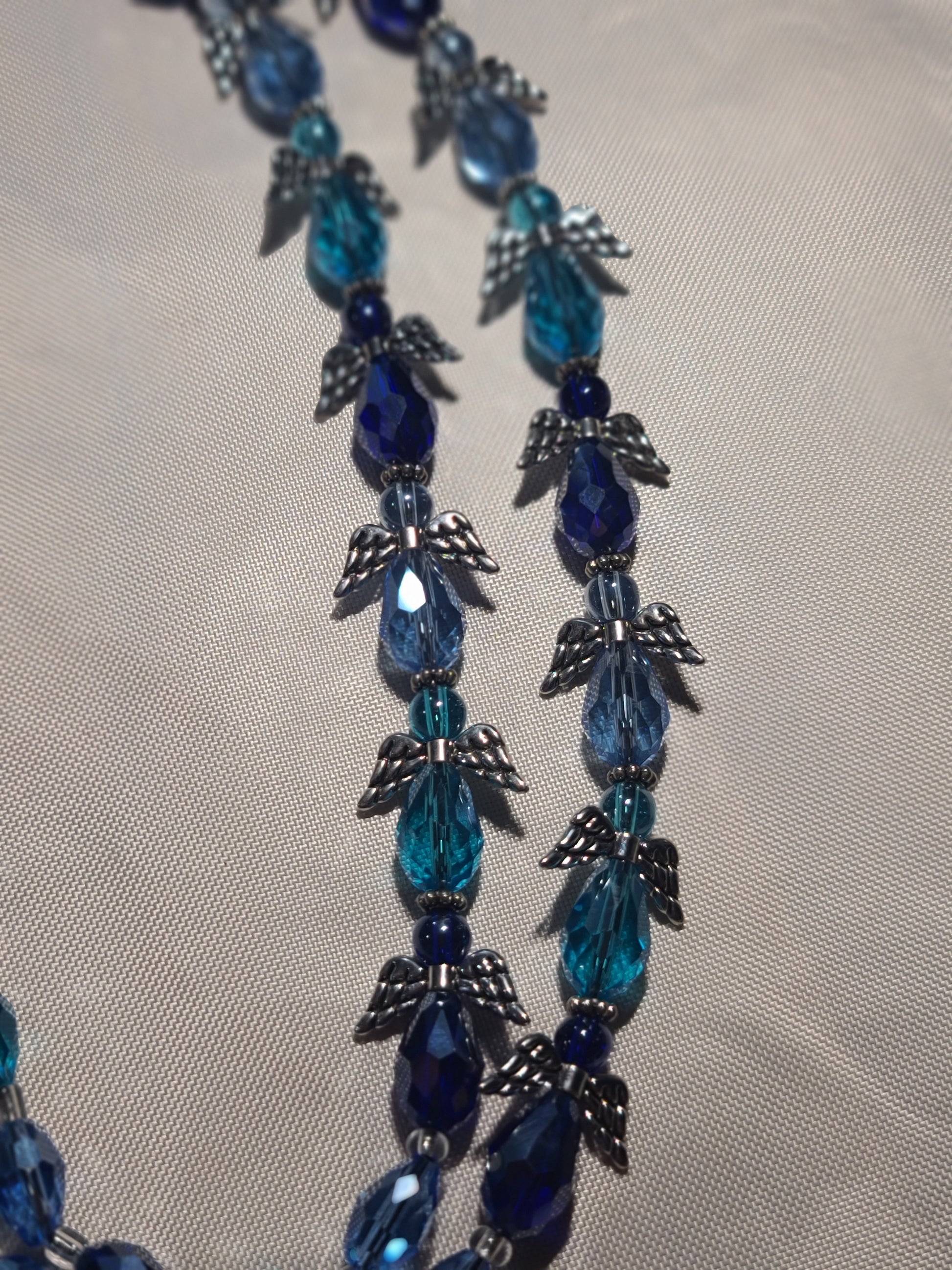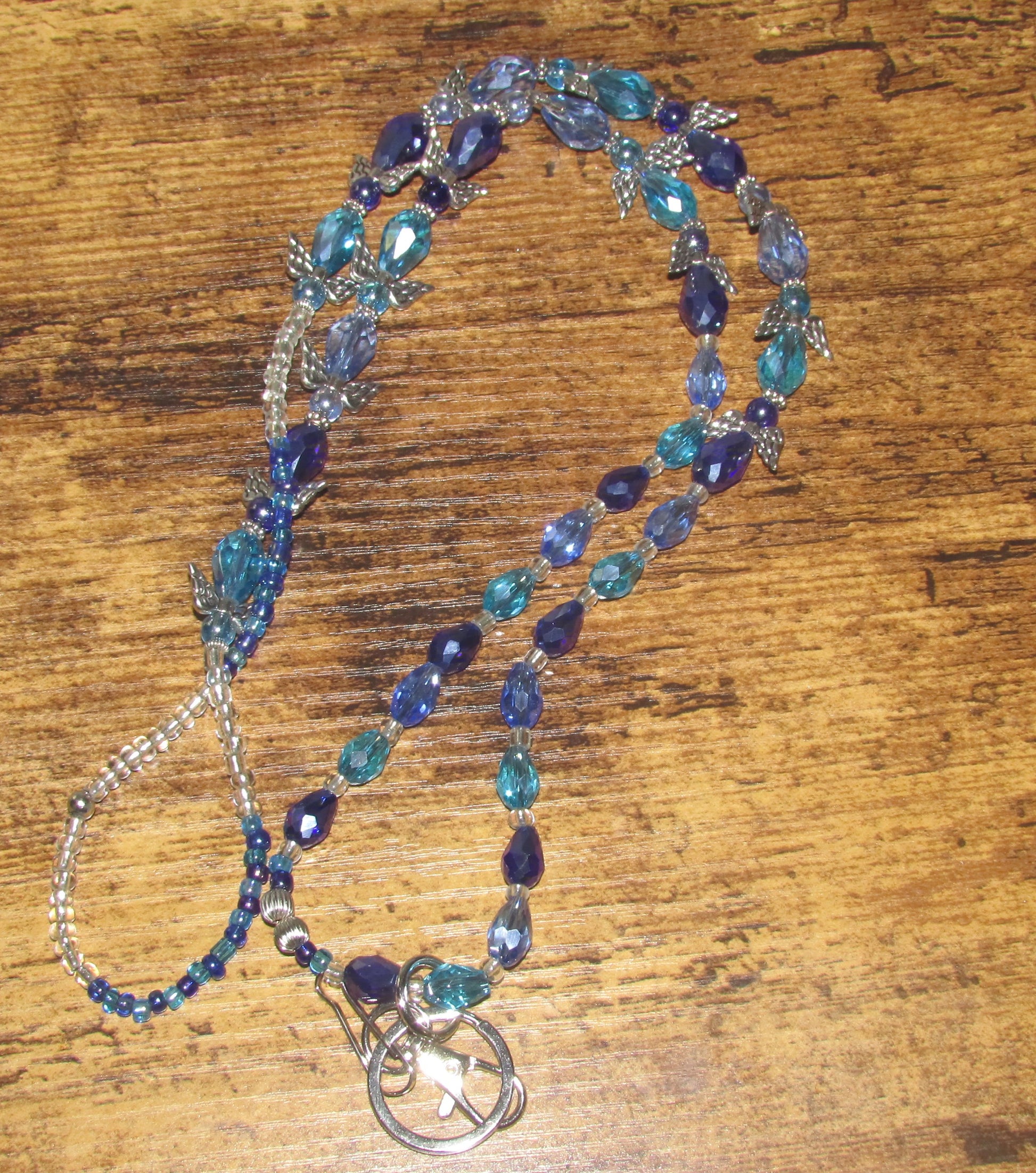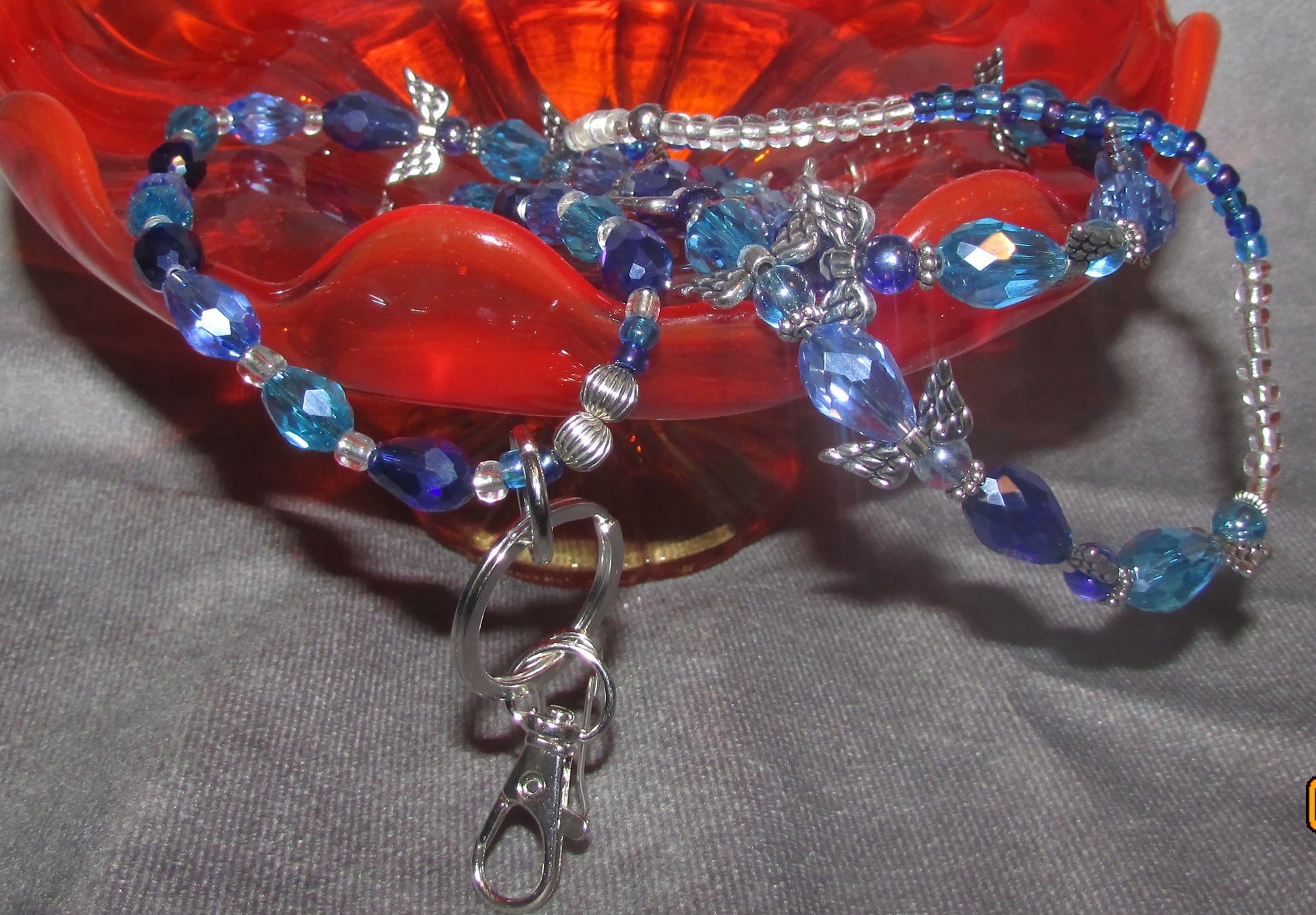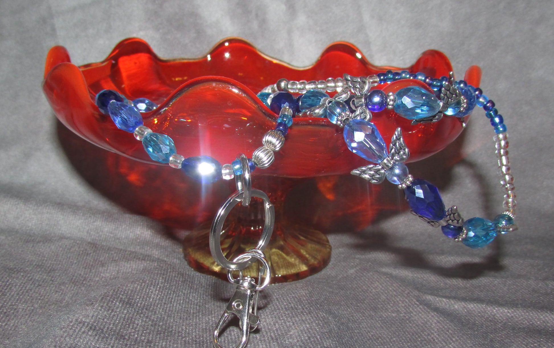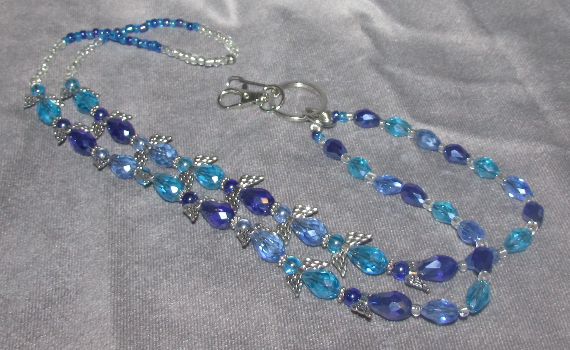 ✨ Handmade Beaded Angel Lanyard – Elegant & Functional Accessory with Aqua Crystal Beads