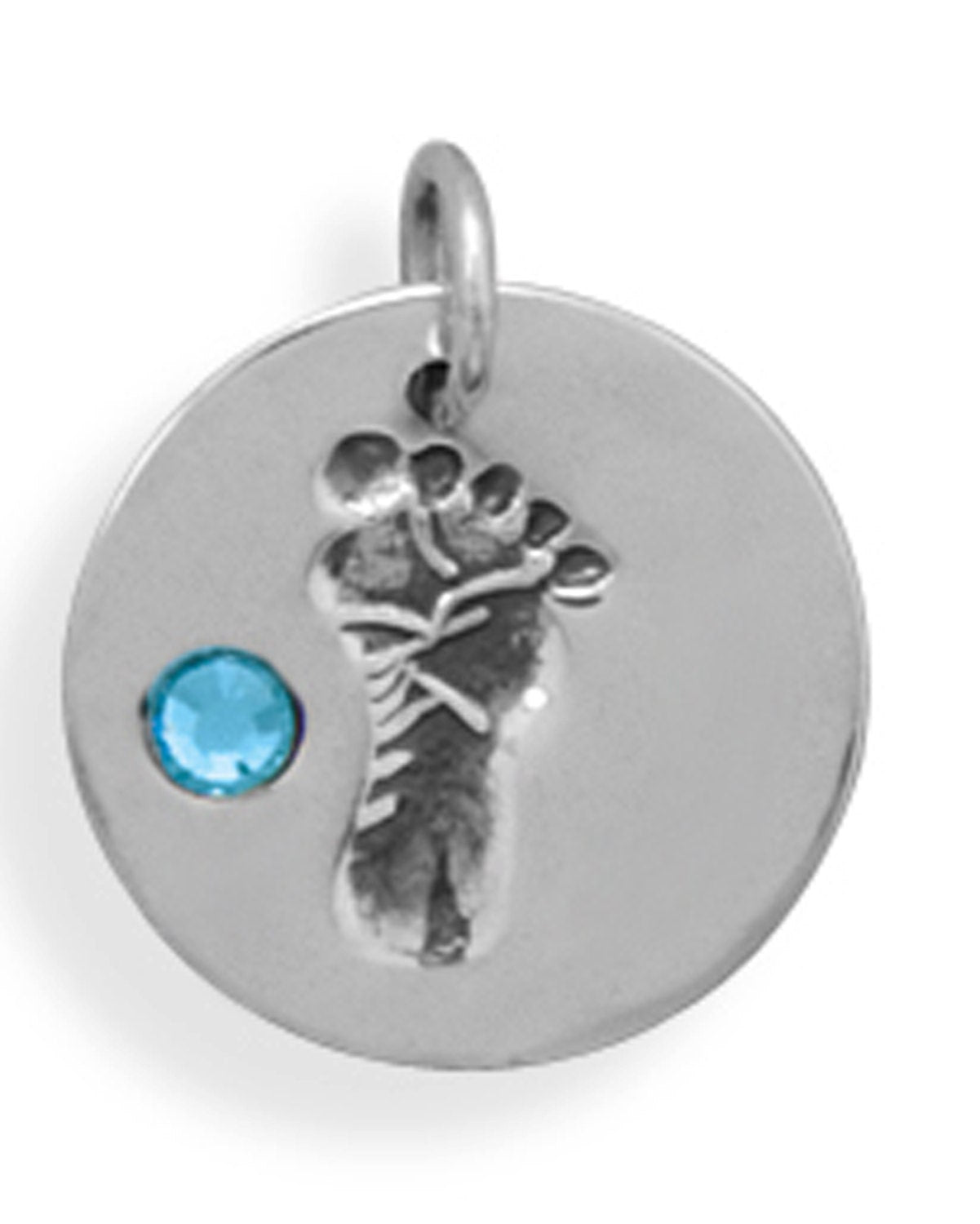 Sterling Silver Baby Boy Footprint Charm with Blue Crystal