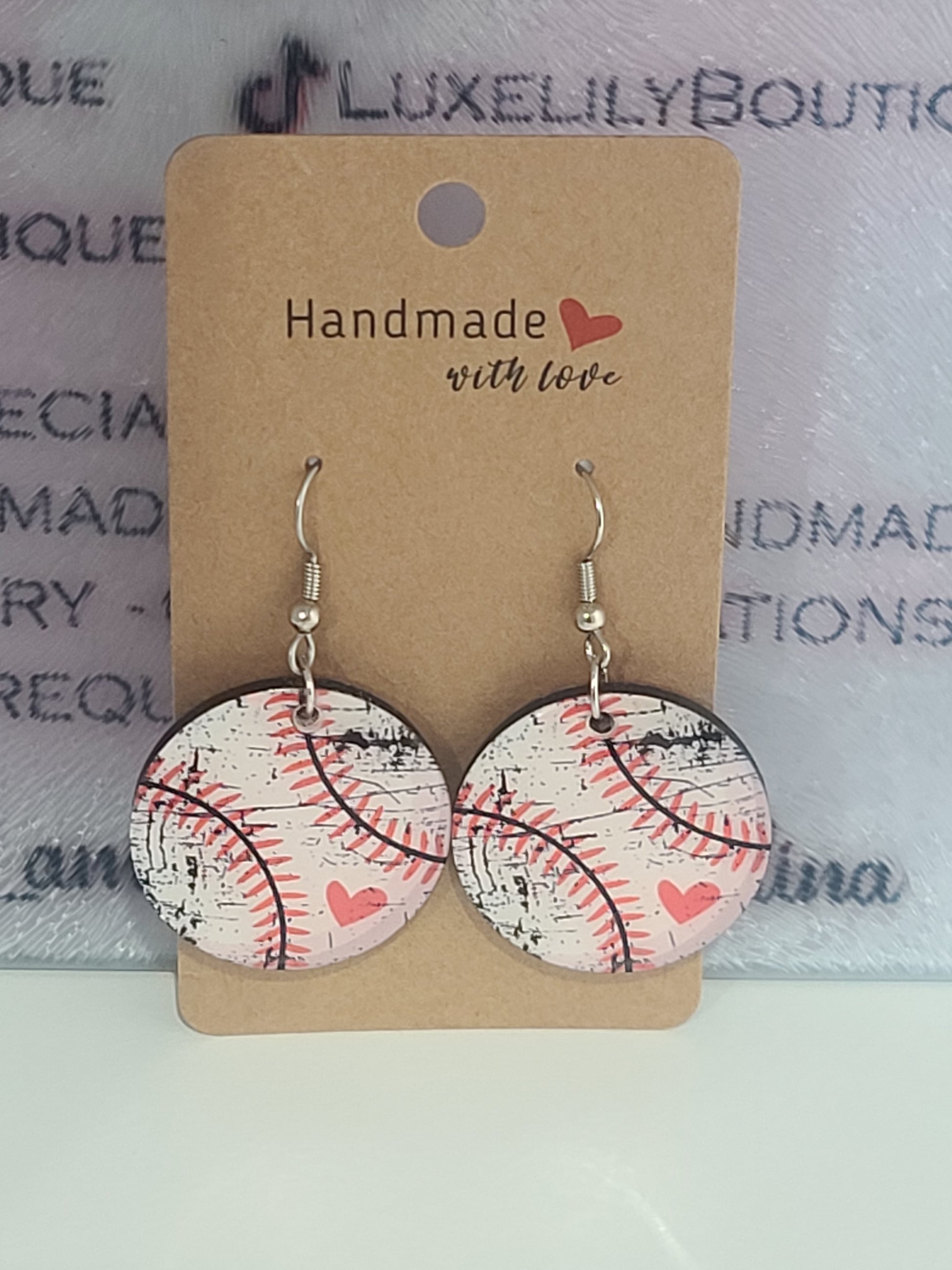 Handmade Distressed Baseball-Themed Laser Cut Wooden Earrings