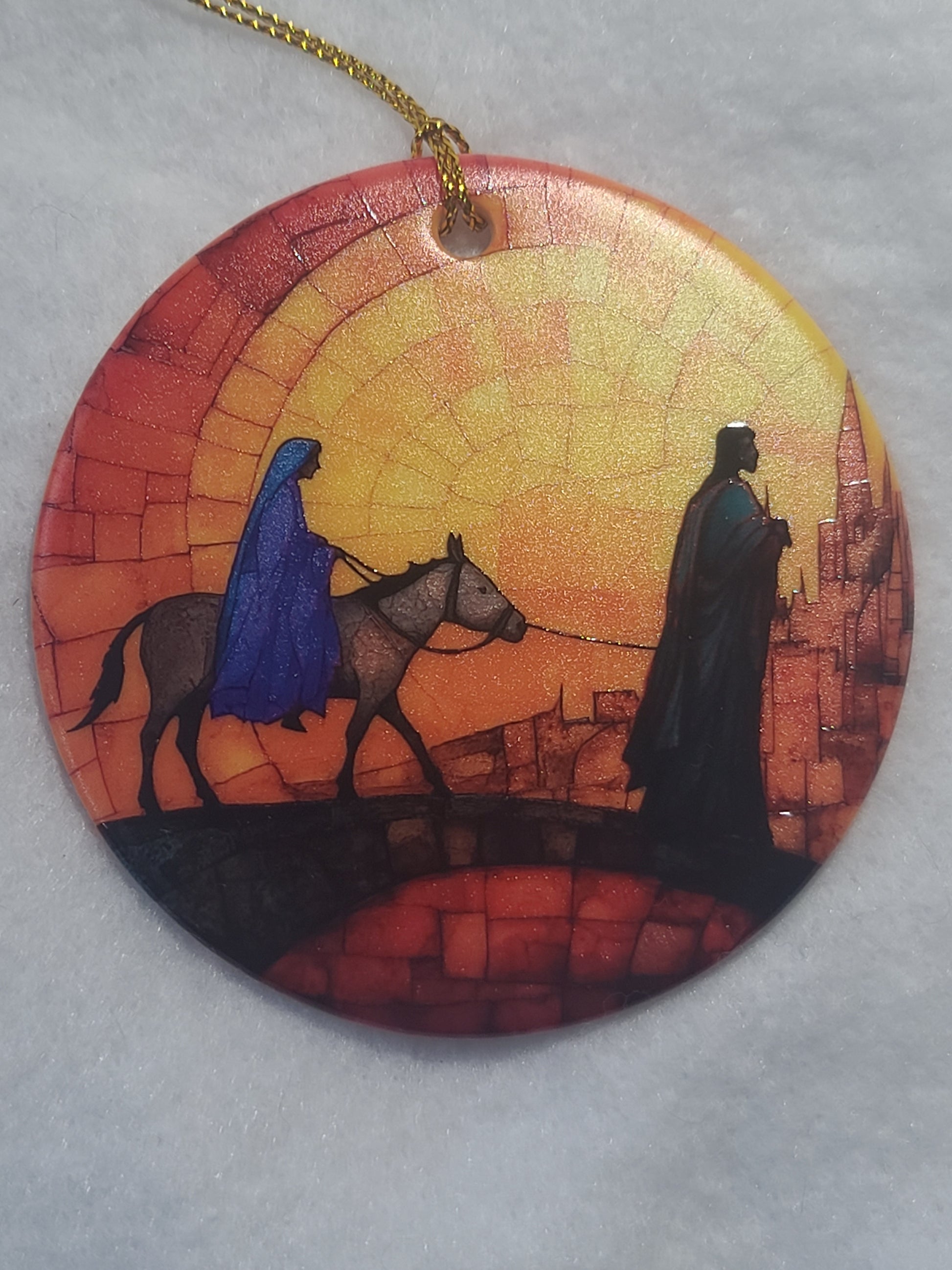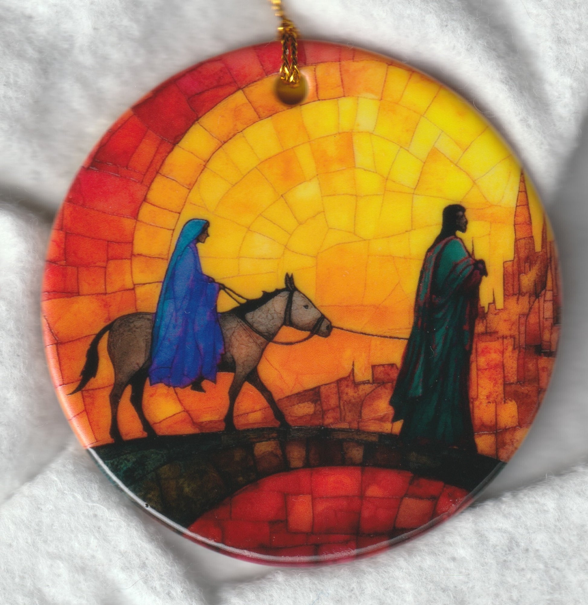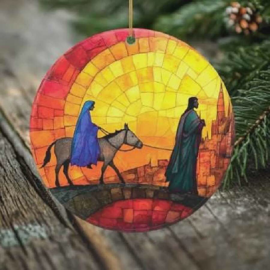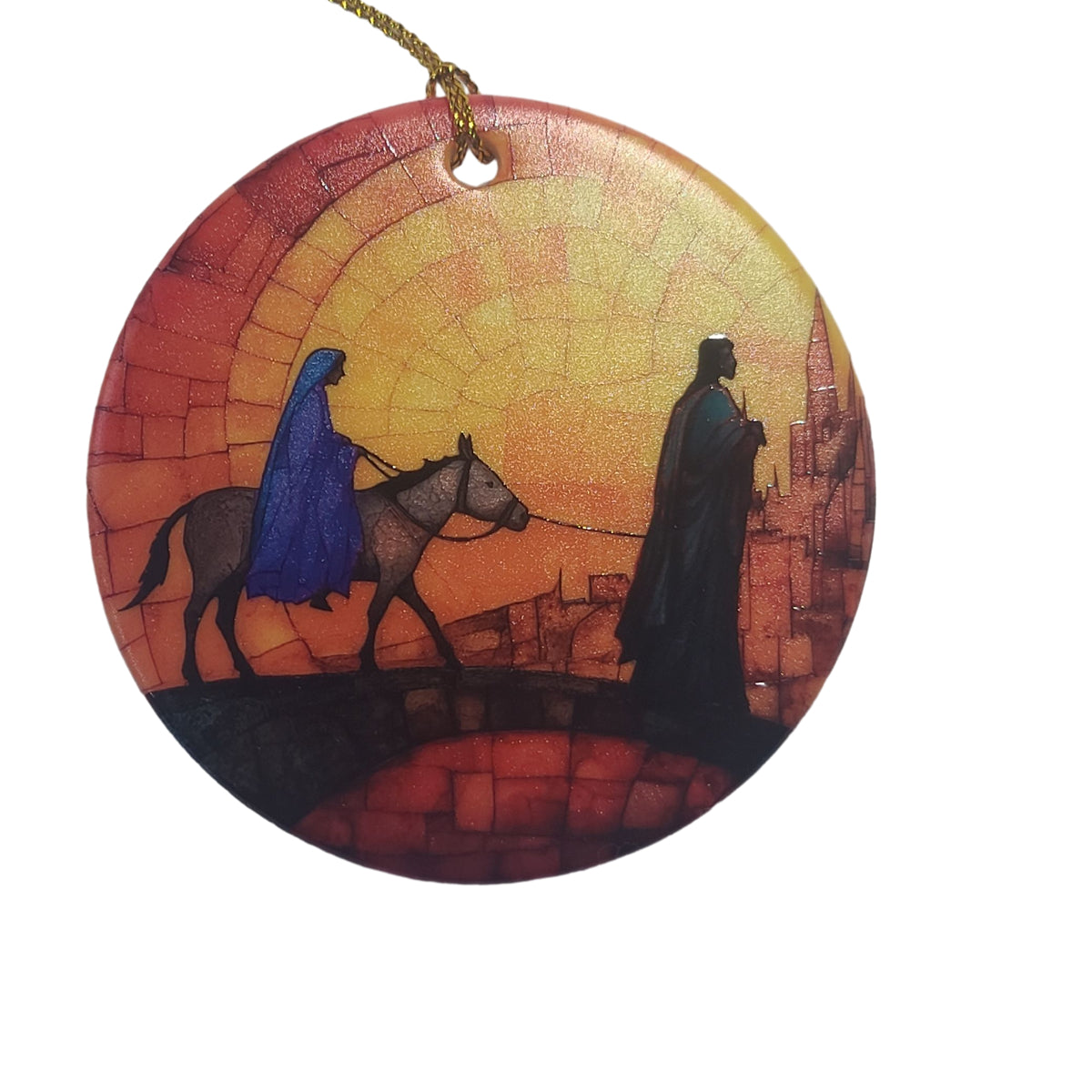 Journey to Bethlehem Double Sided Porcelain Christmas Ornament, UV Printed