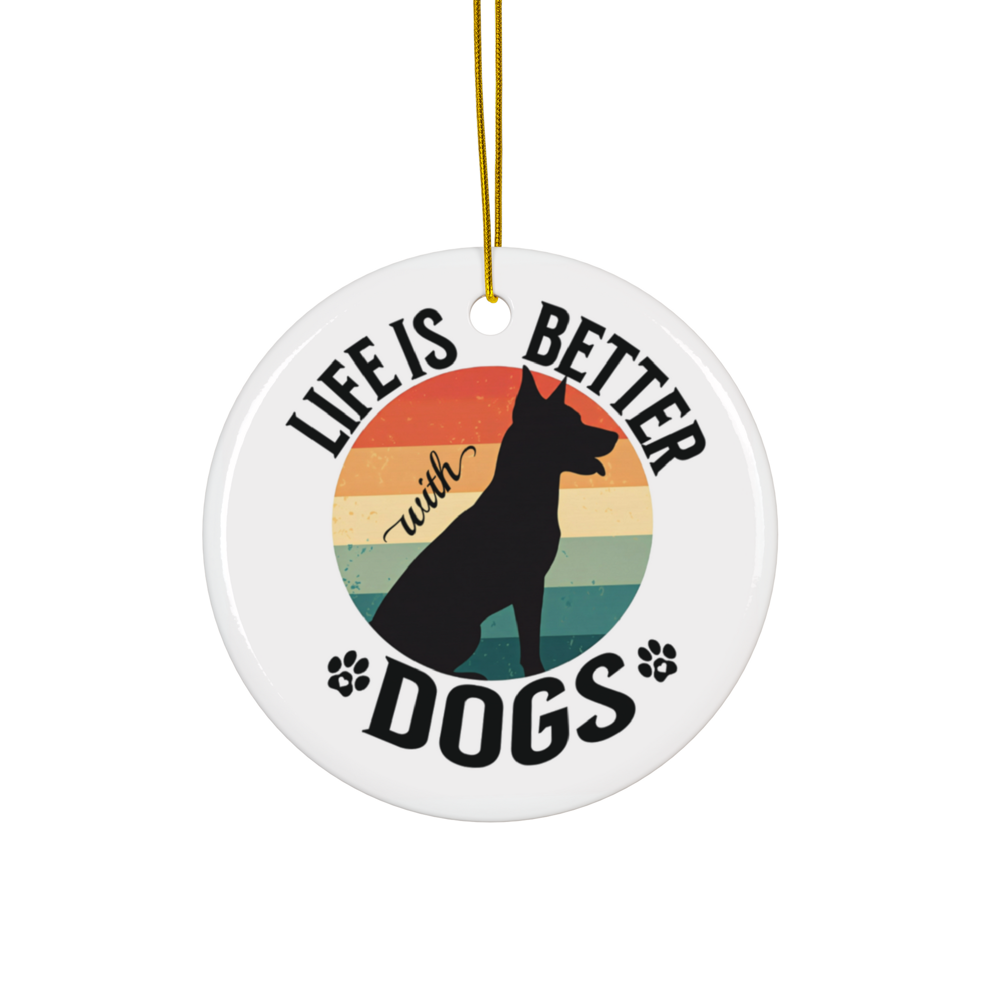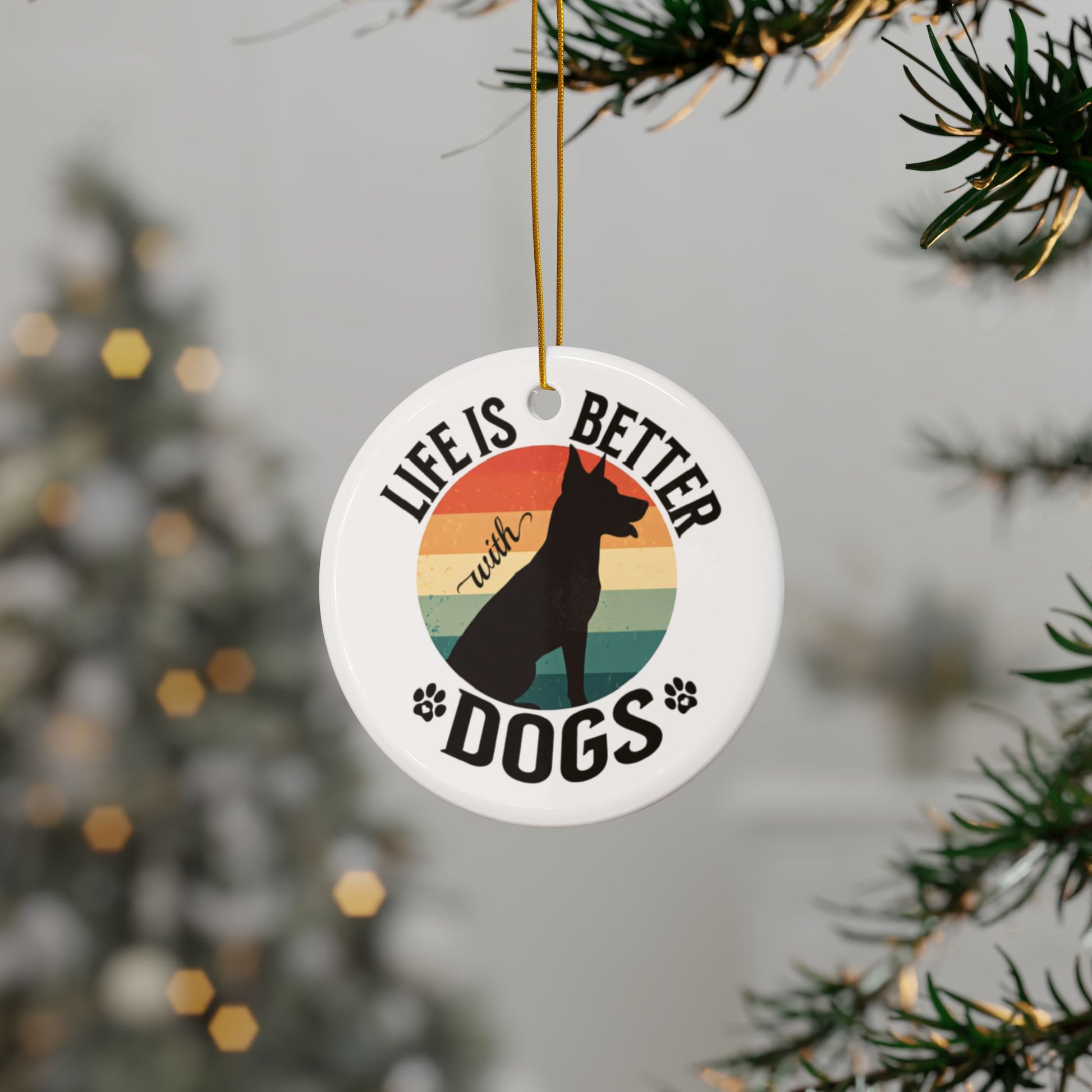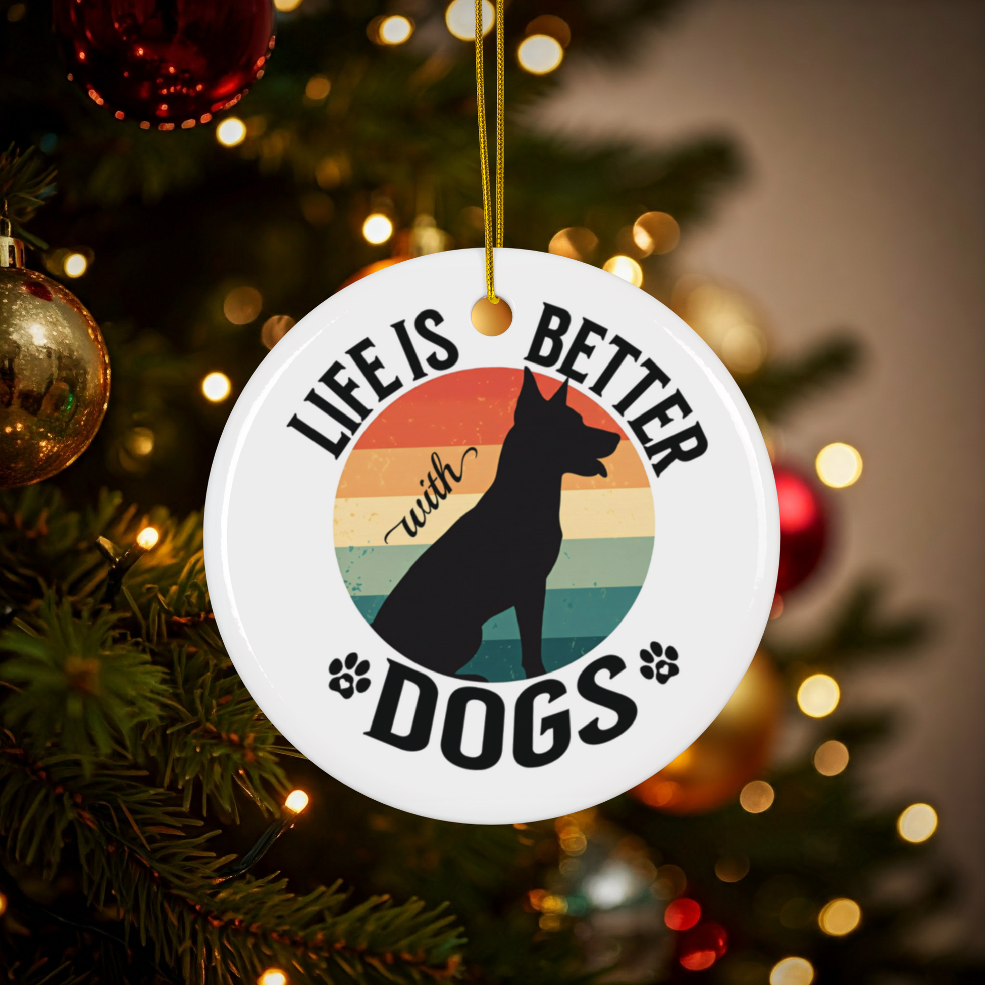 Life is Better with Dogs - Round Ceramic Christmas Ornament - 2 Sided
