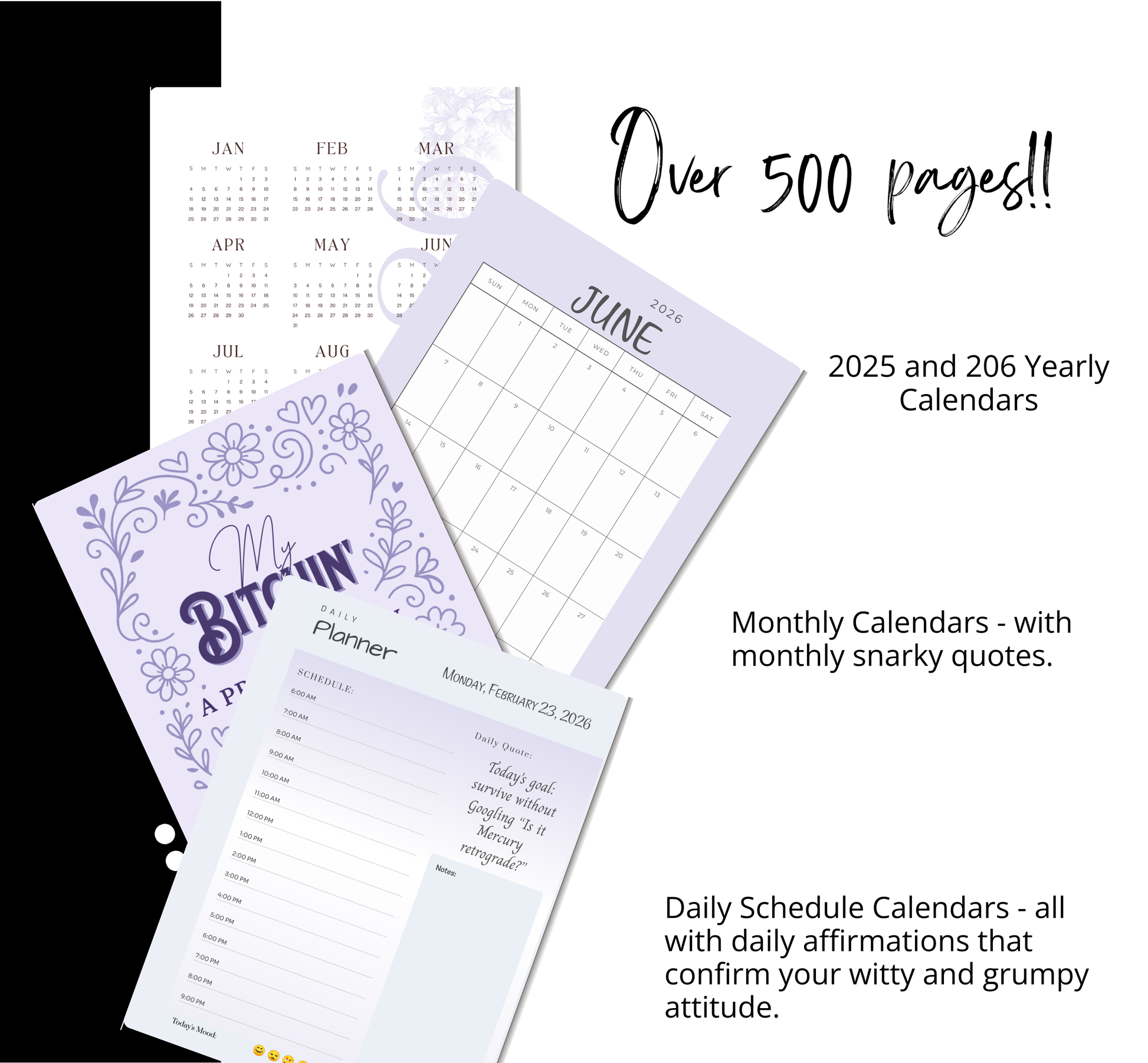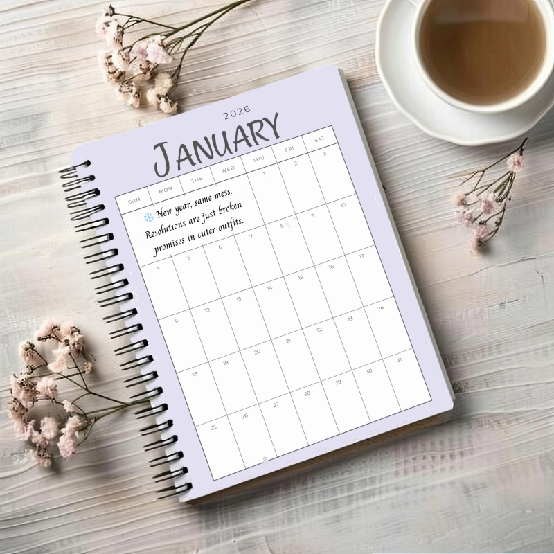 ✔ 12 Monthly Calendars with a quote that sets the tone — whether it's "September: The prequel to chaos," or "May: When everything is blooming except your patience."