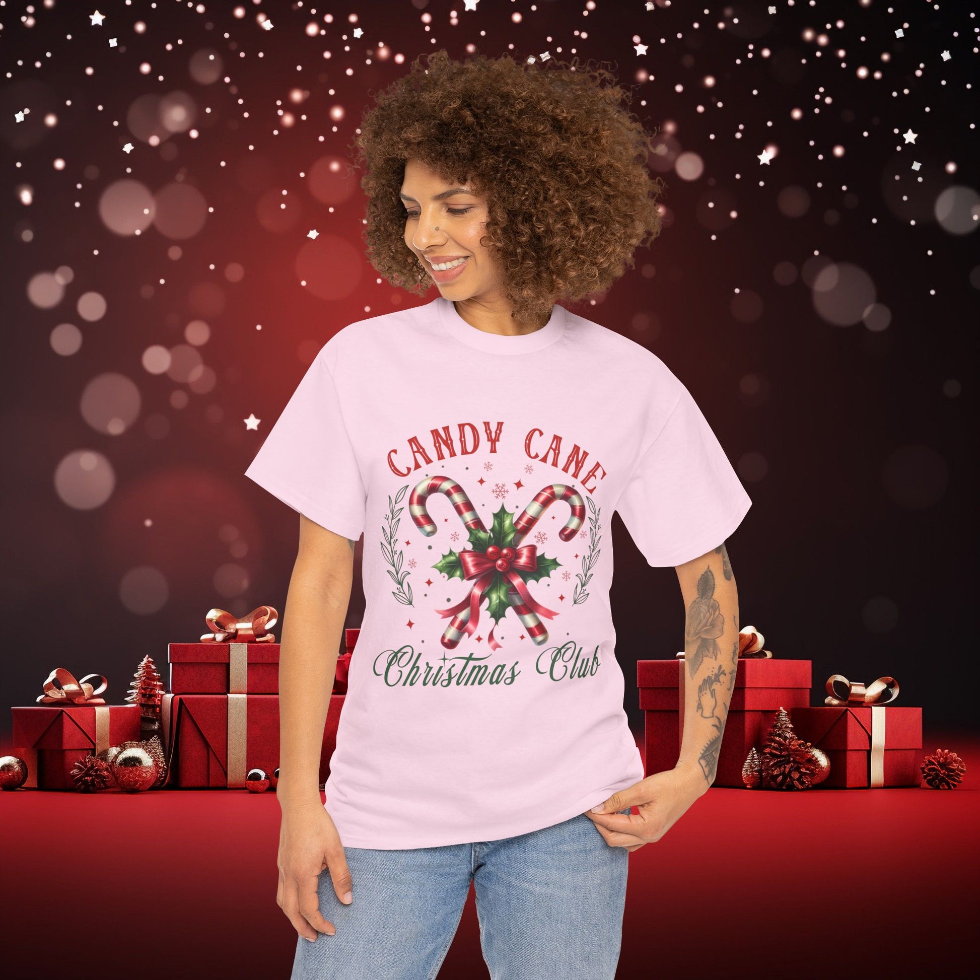 This Candy Cane Christmas Club Christmas T-Shirt exudes festive holiday cheer with its vibrant design. Perfect for those who love Christmas and want to showcase their holiday spirit. Ideal for holiday parties, Christmas gatherings, or just spreading joy during the winter season.