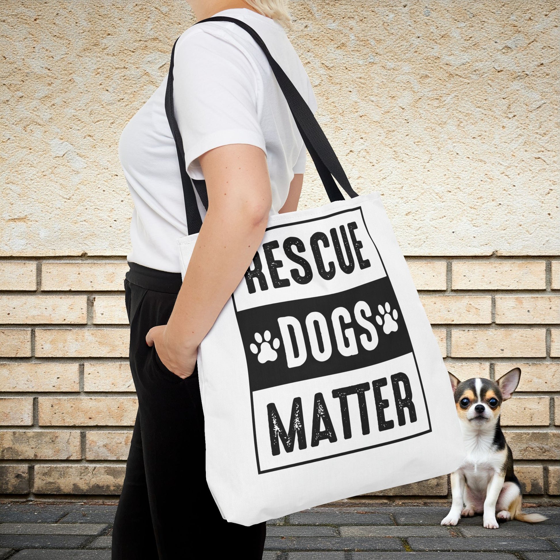 Show your support for rescue dogs and make a statement with this versatile tote bag β perfect for everyday use and a great way to spread the message!