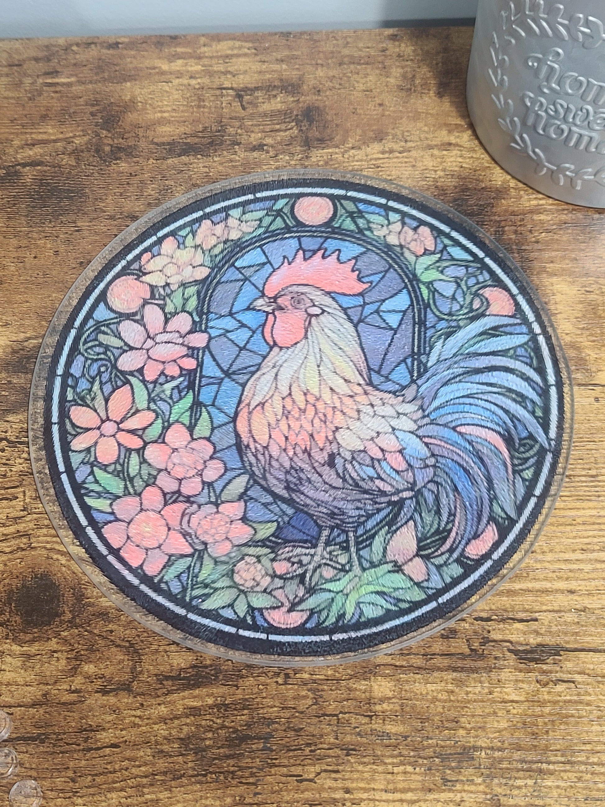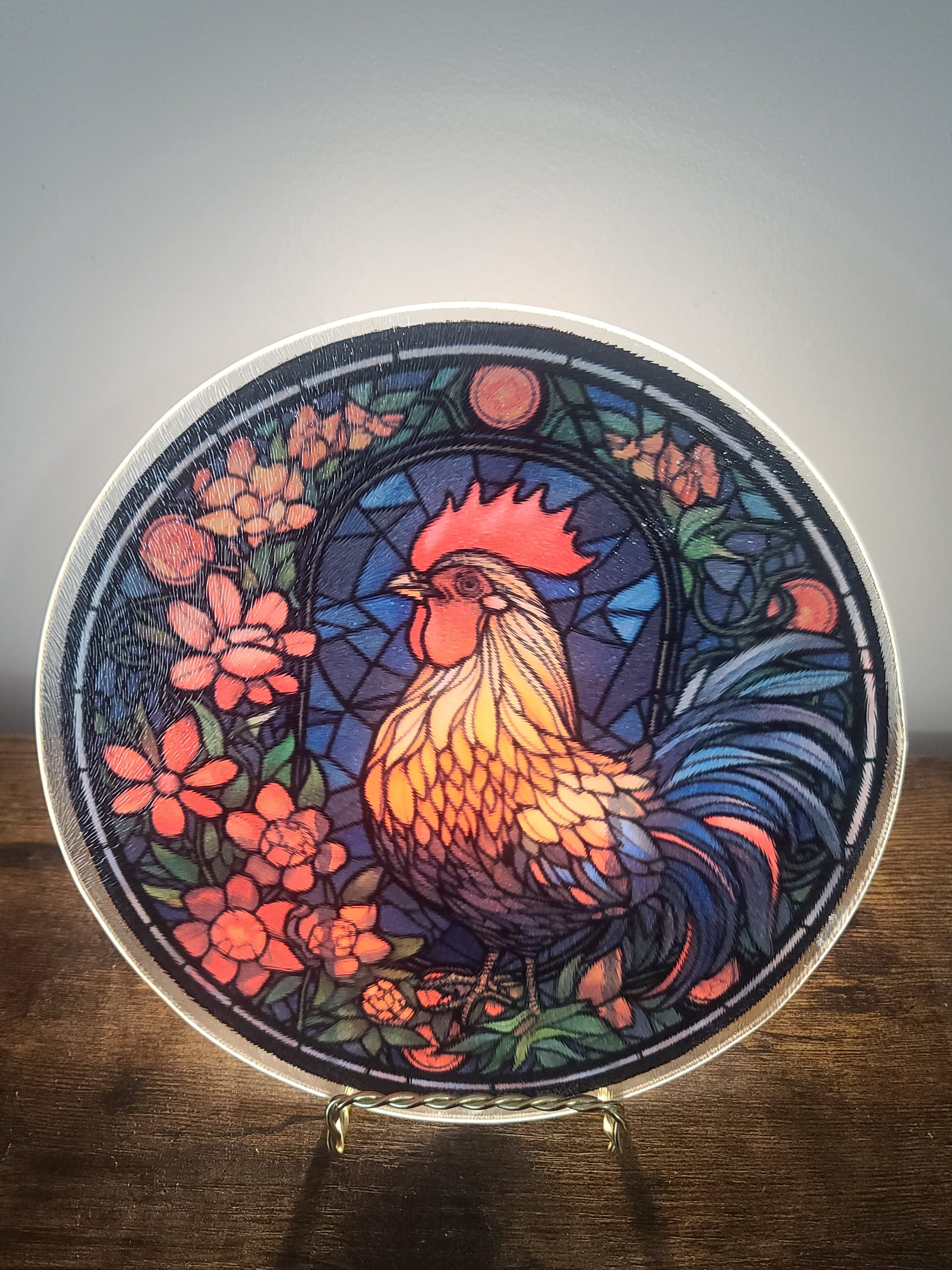 🐔✨ Handmade Rooster Stained Glass Look Glass Trivet / Cutting Board ✨🐔