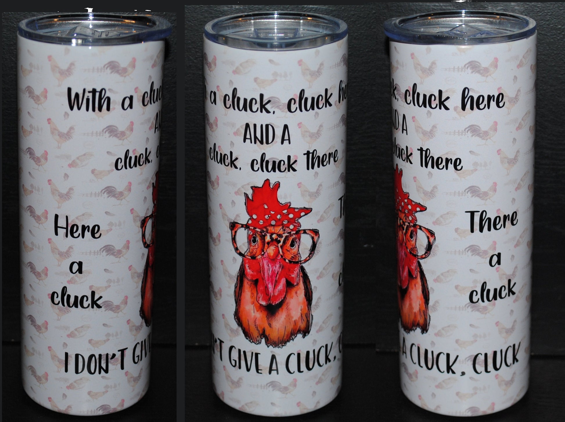 Add a hilarious touch to your daily hydration with our "I Don't Give a Cluck" 20 oz Skinny Tumbler! Perfect for chicken moms, chicken dads, and anyone who appreciates a good cluckin' laugh. This isn't just a tumbler; it's a statement piece that shows off your playful side.