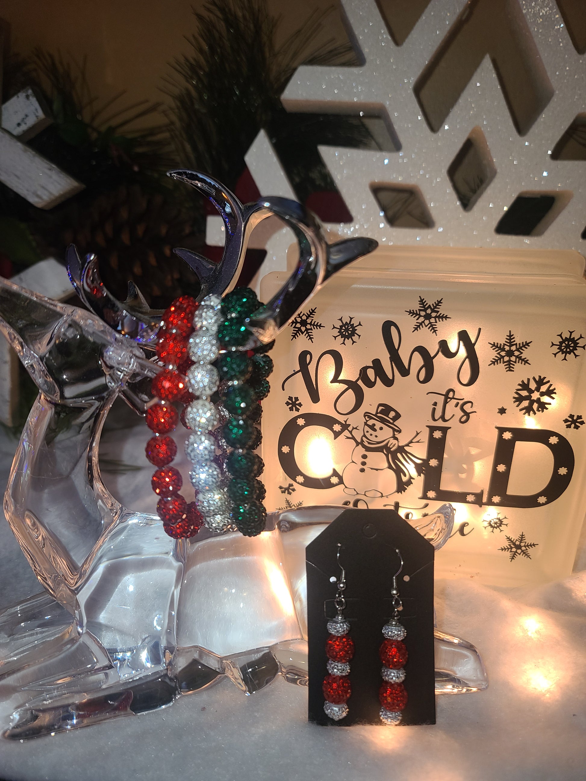 Get into the holiday spirit with our stunning three-strand set of Christmas-themed bling bracelets!