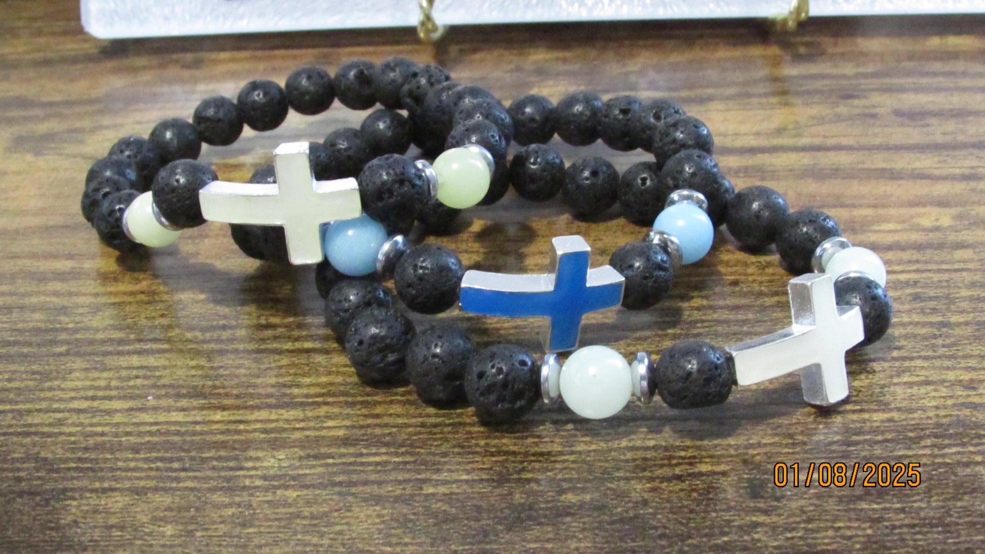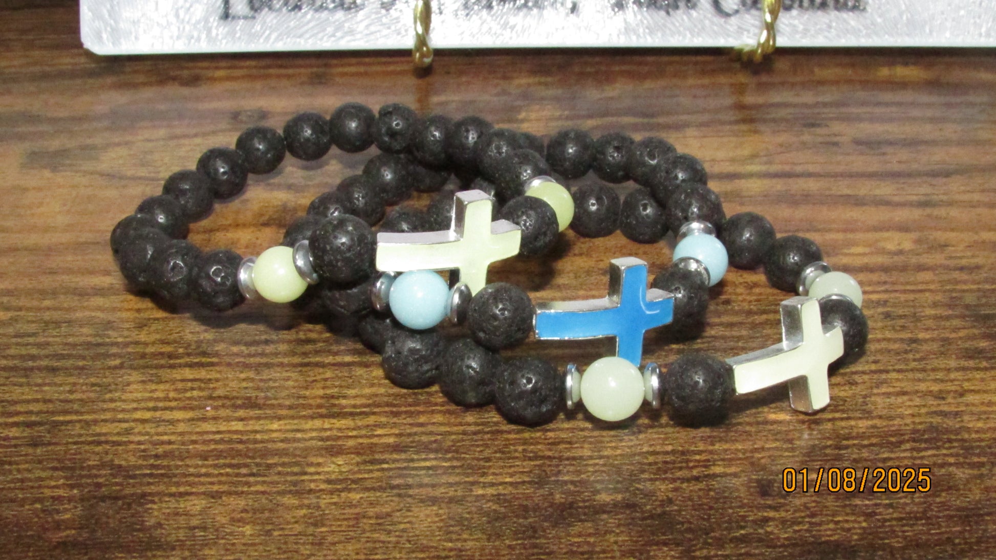 Cross Volcanic Stone Beaded Stretch Glow-in-the-Dark Bracelet for Men & Women