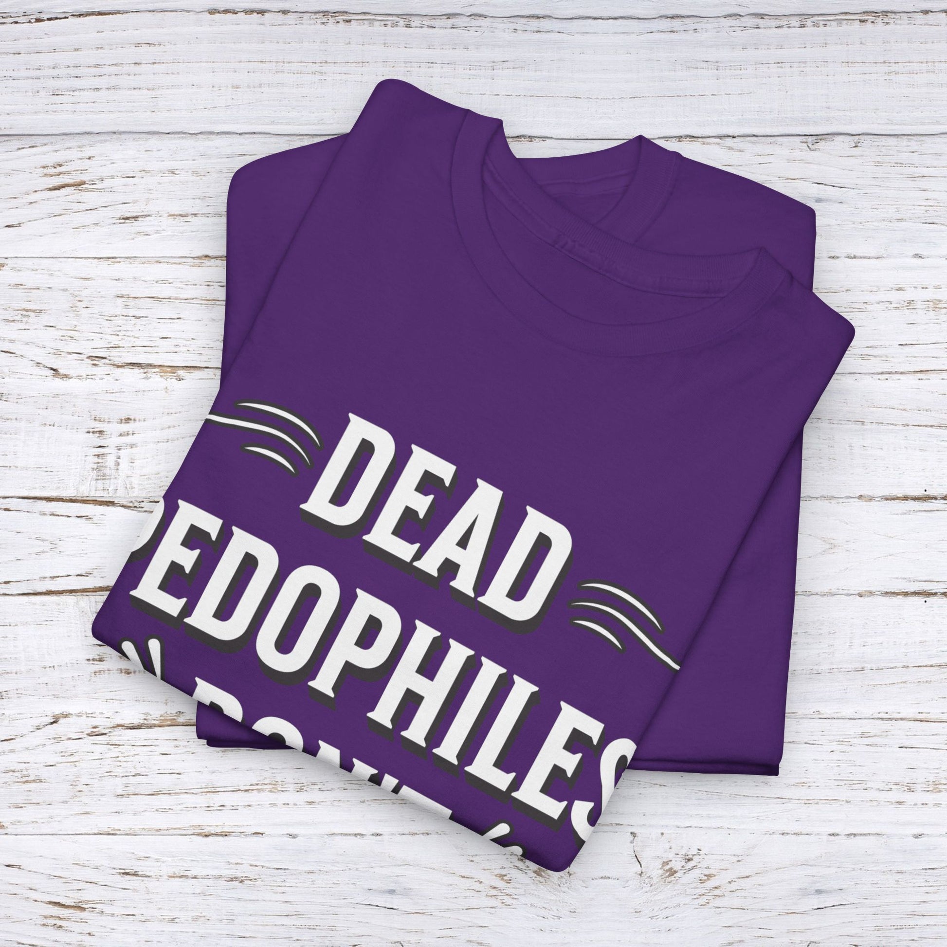 This bold and unapologetic graphic tee features the powerful message: "Dead Pedophiles Don't Re-Offend." Designed for those who stand firm in their beliefs and aren't afraid to express them, this statement shirt is perfect for raising awareness, sparking discussions, or simply making a point with a touch of dark humor.