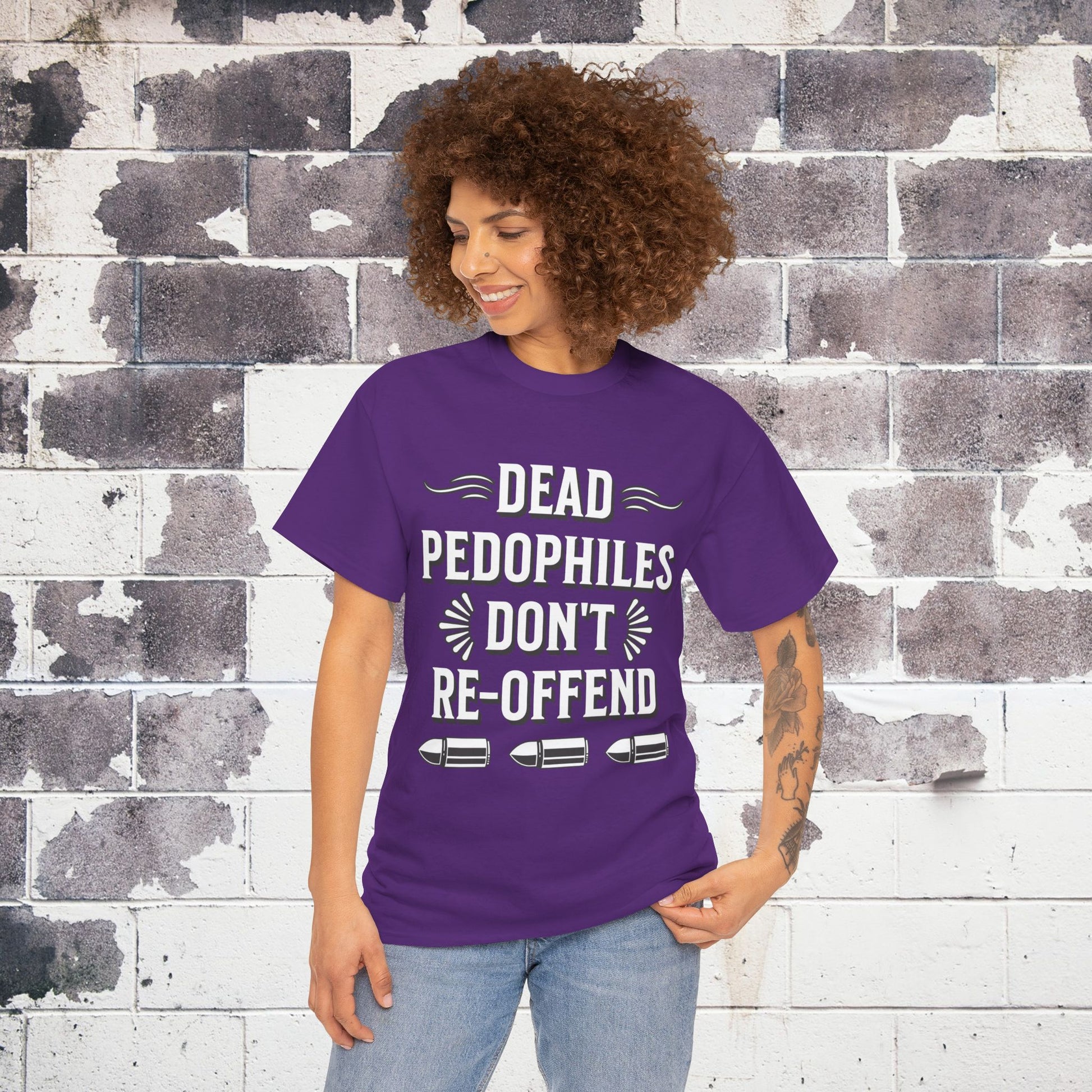 Dead Pedophiles Don't Re-Offend Statement Tee, Casual Wear, Awareness Apparel, Adult Humor, Sarcastic T-Shirt