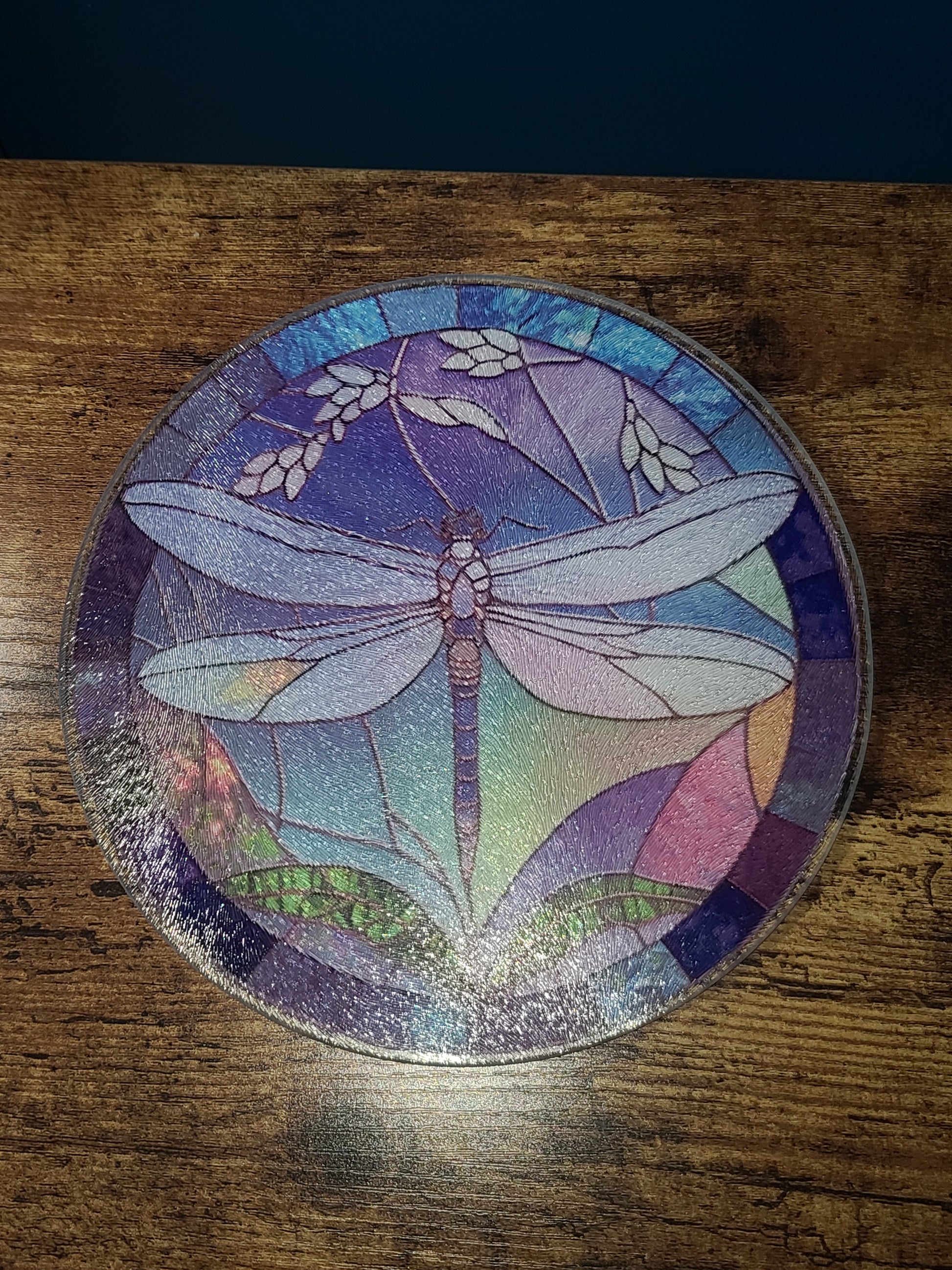 Crafted from high-quality, textured glass, each trivet or cutting board is made to order, ensuring that no two pieces are exactly alike. This versatile piece serves as a practical trivet to protect your surfaces from heat or as a stylish cutting board for food prep. The intricate dragonfly design adds an artistic touch to your kitchen while being both functional and beautiful.