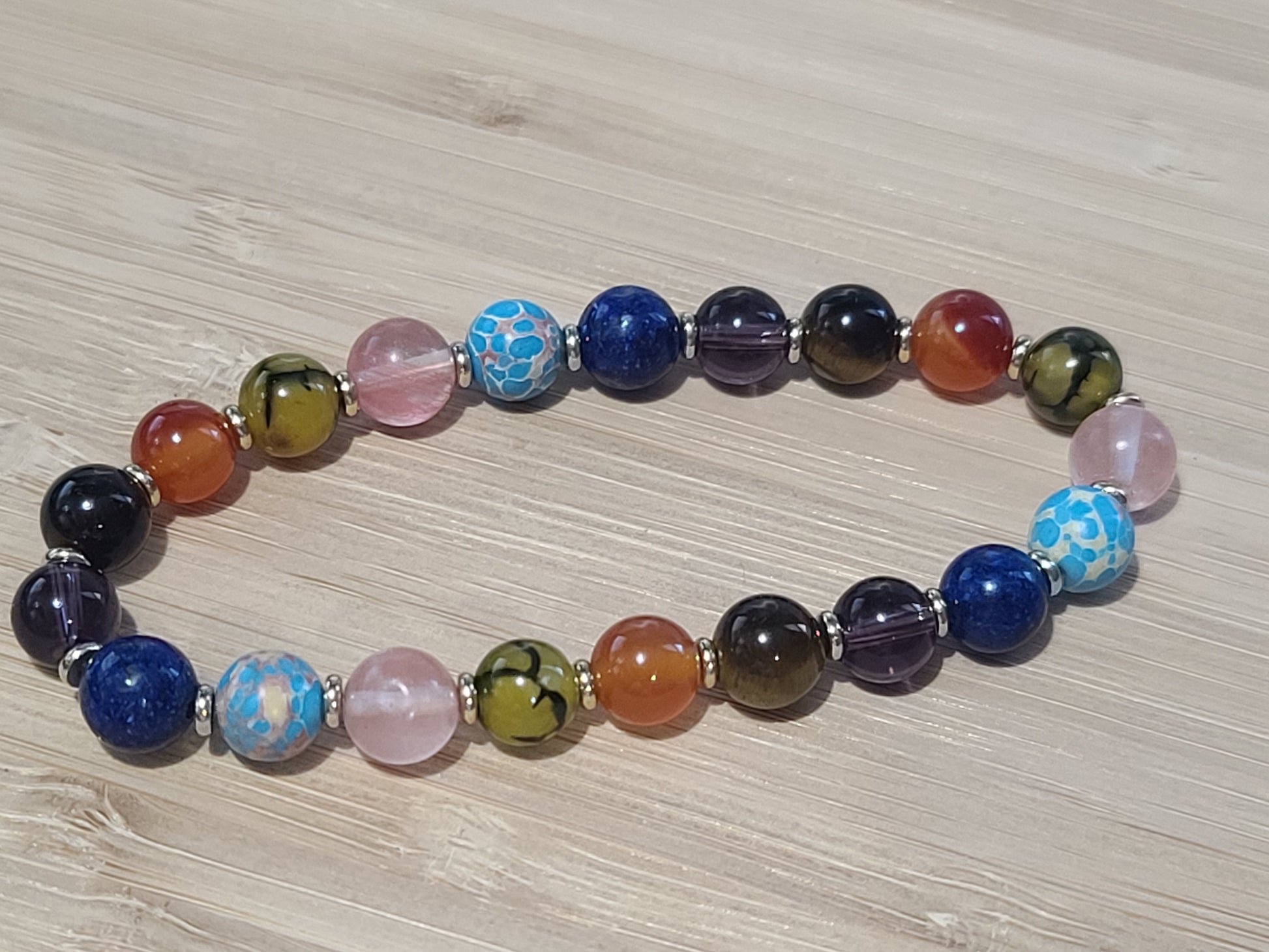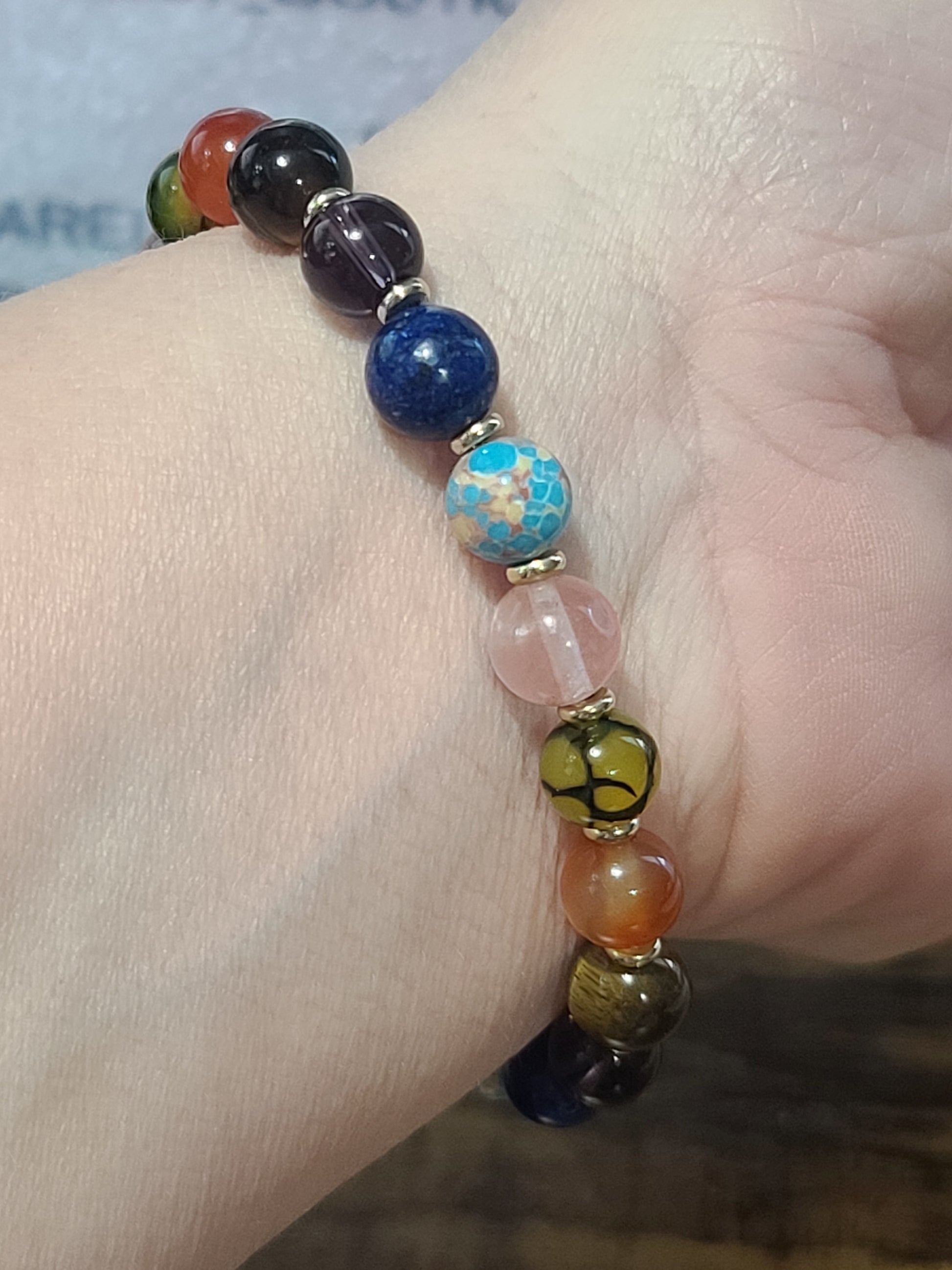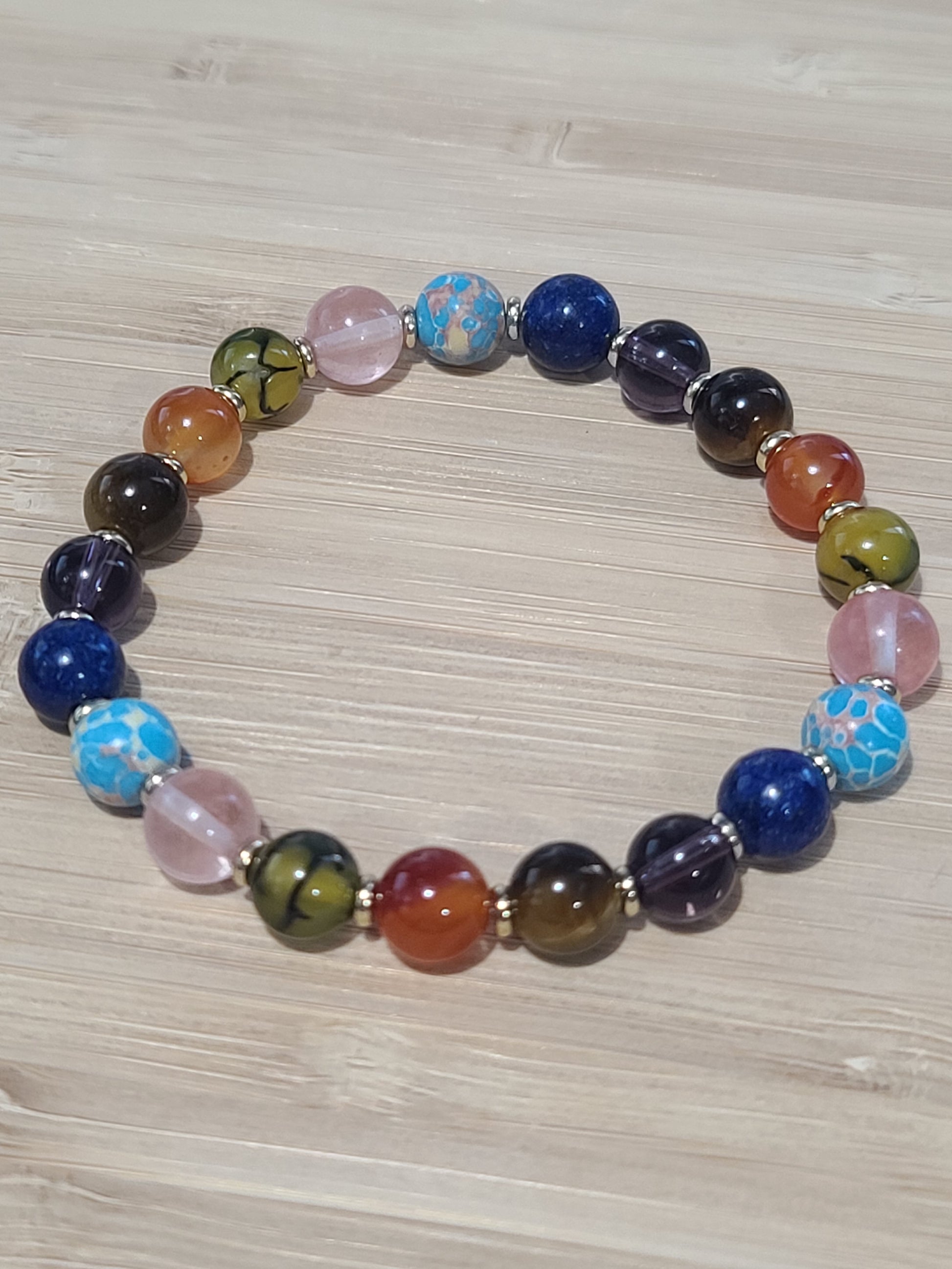 Empath's Shield and Aura Cleansing Gemstone and Crystal Beaded Bracelet - Tiger Eye, Lapis Lazuli, Amethysts