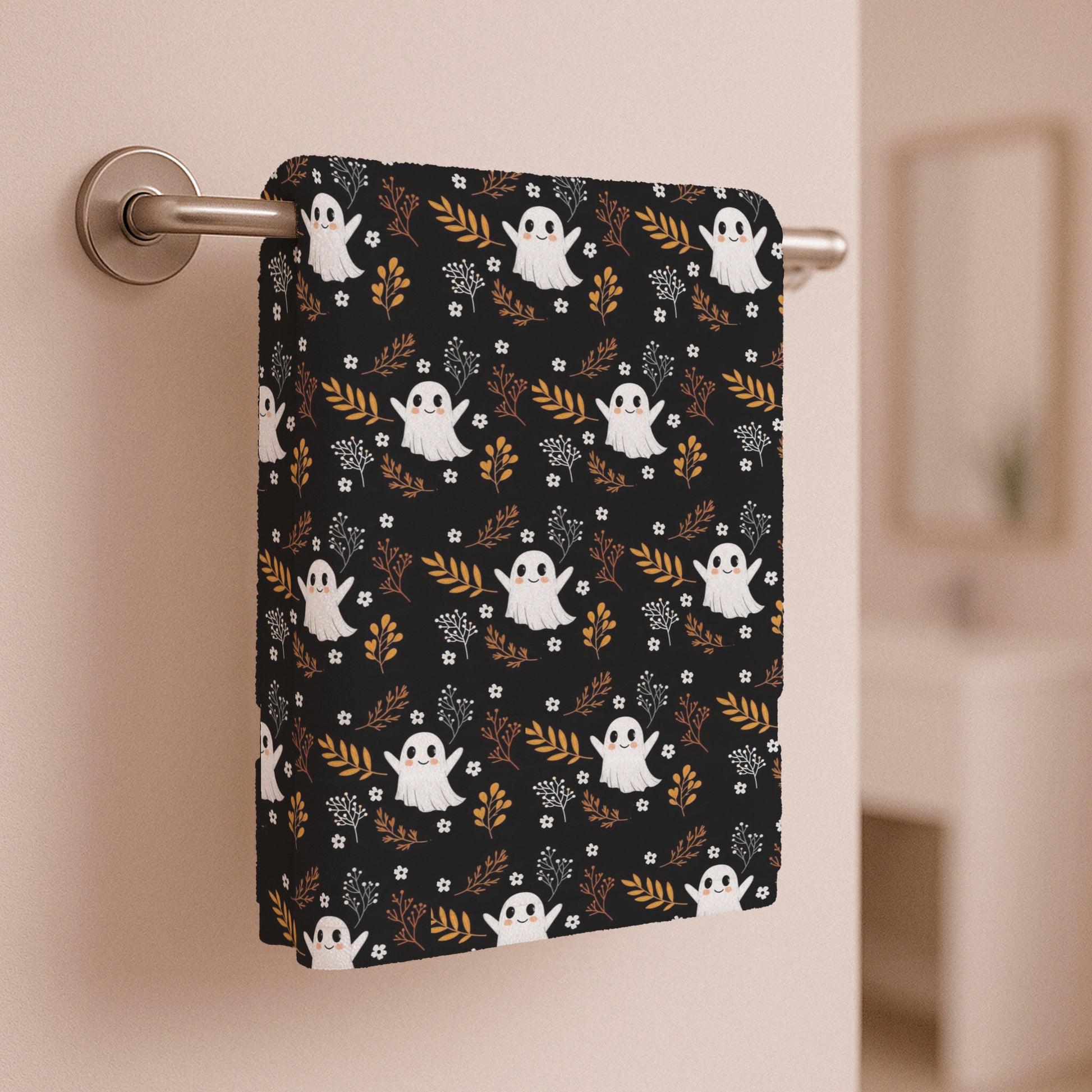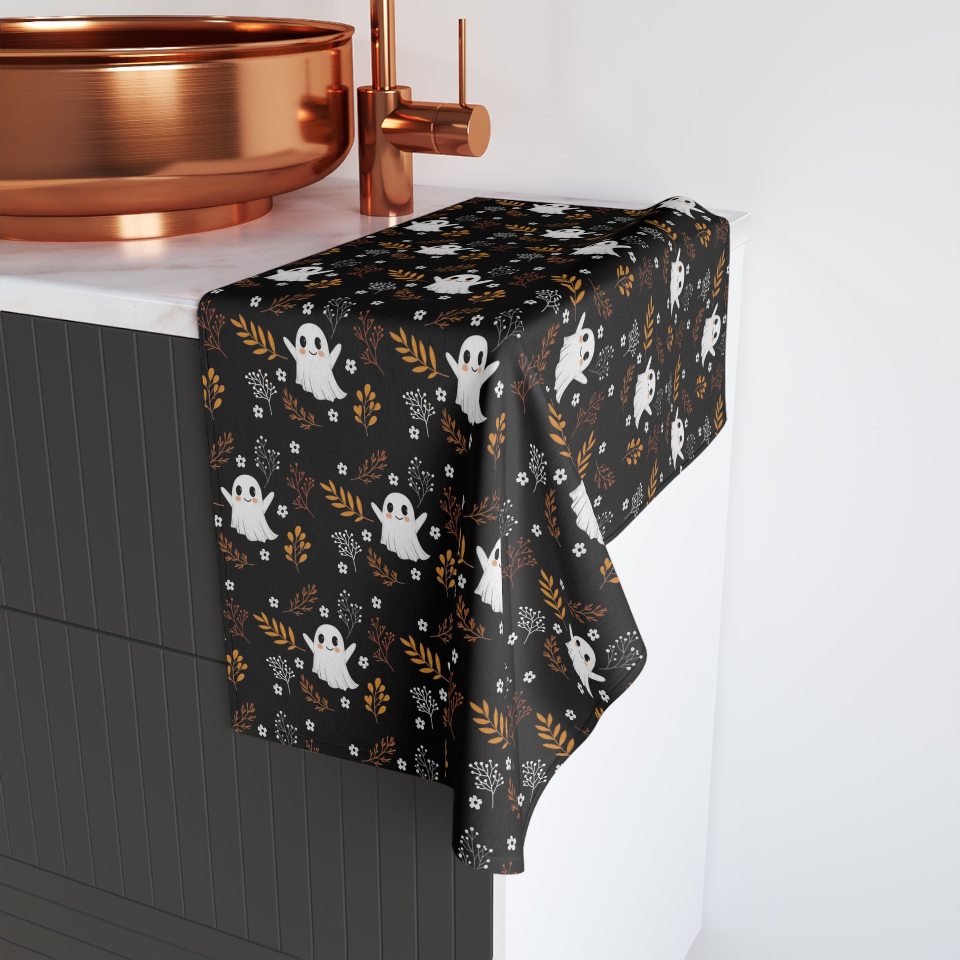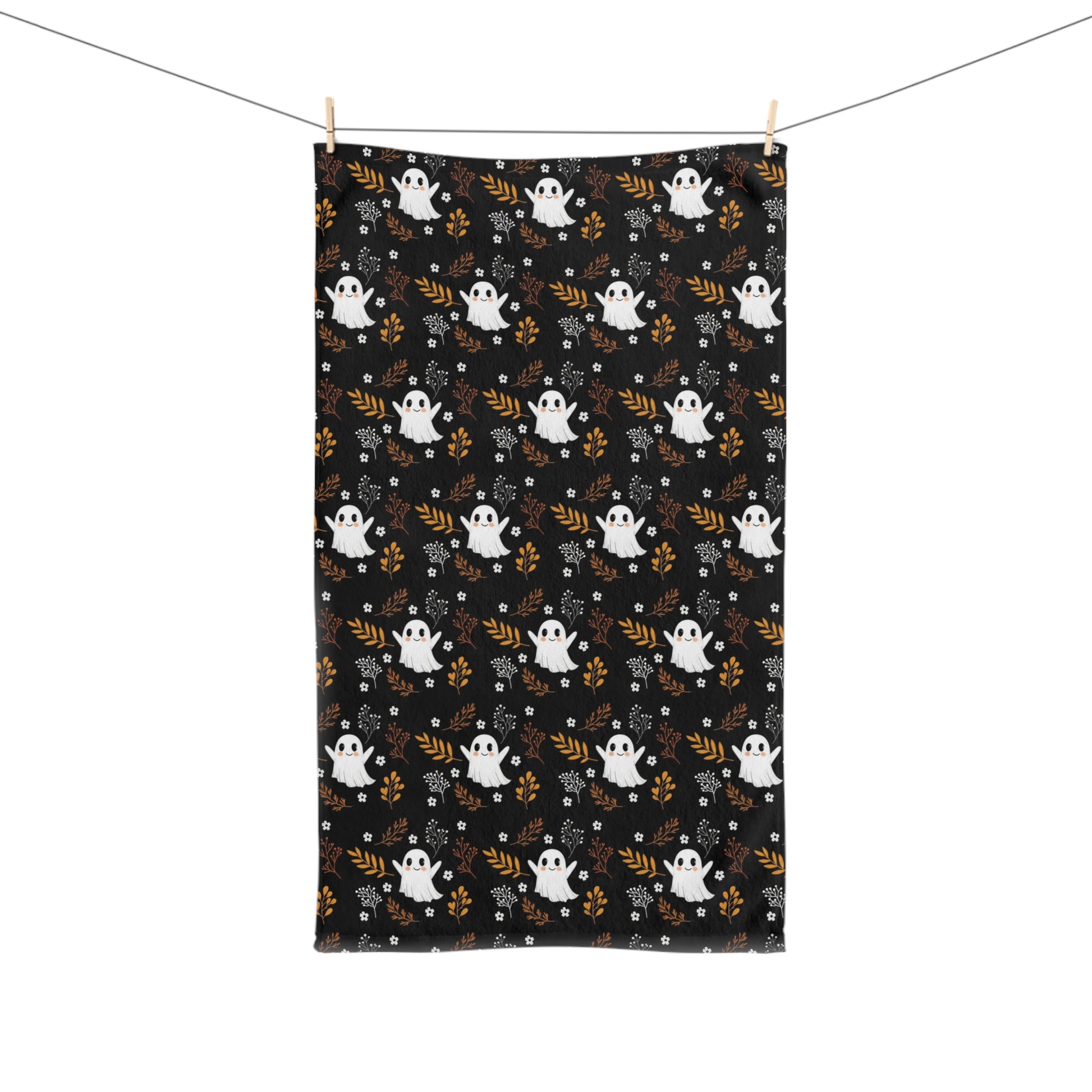 Brighten up your kitchen or bathroom with this delightful hand towel, featuring a whimsical ghost pattern set against a striking black background. This hand towel is not just a functional accessory, but also a delightful decoration that brings a touch of playful spirit to your home. Ideal for Halloween celebrations, it’s perfect for those who love to add seasonal flair to their decor. The soft touch and vibrant colors will enhance your spaces, making it a fun gift for friends, family, or anyone who appreciates unique home accessories. Use it during your spooky gatherings or simply to bring a smile to your daily routine, fitting beautifully into any festive occasion.