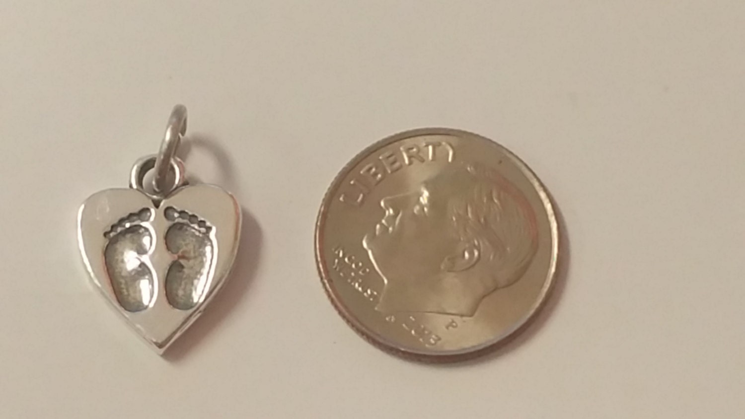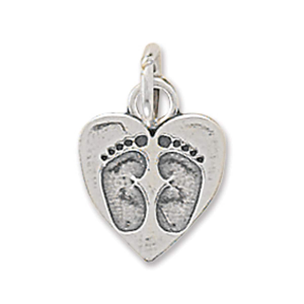 Sterling Silver Heart Charm with Baby Footprints