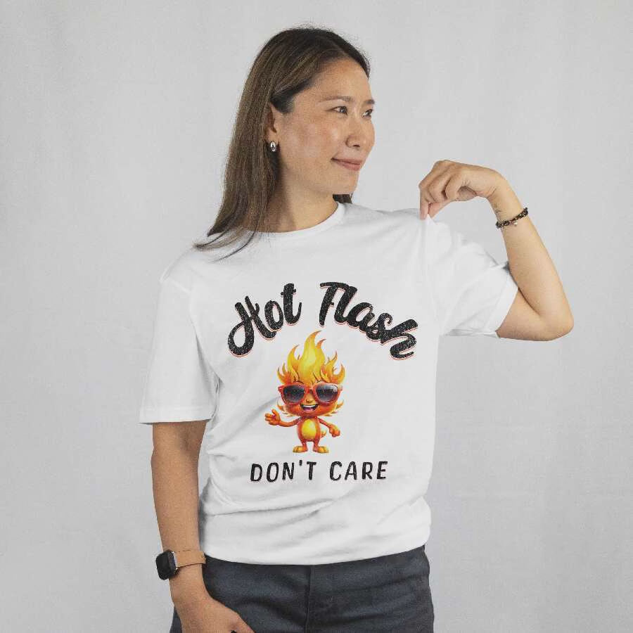 Ladies, it's time to cool down by turning up the heat—on your wardrobe! Introducing the "Hot Flash, Don’t Care" t-shirt—a hilarious, empowering, and totally stylish way to embrace the wild ride of perimenopause and menopause.