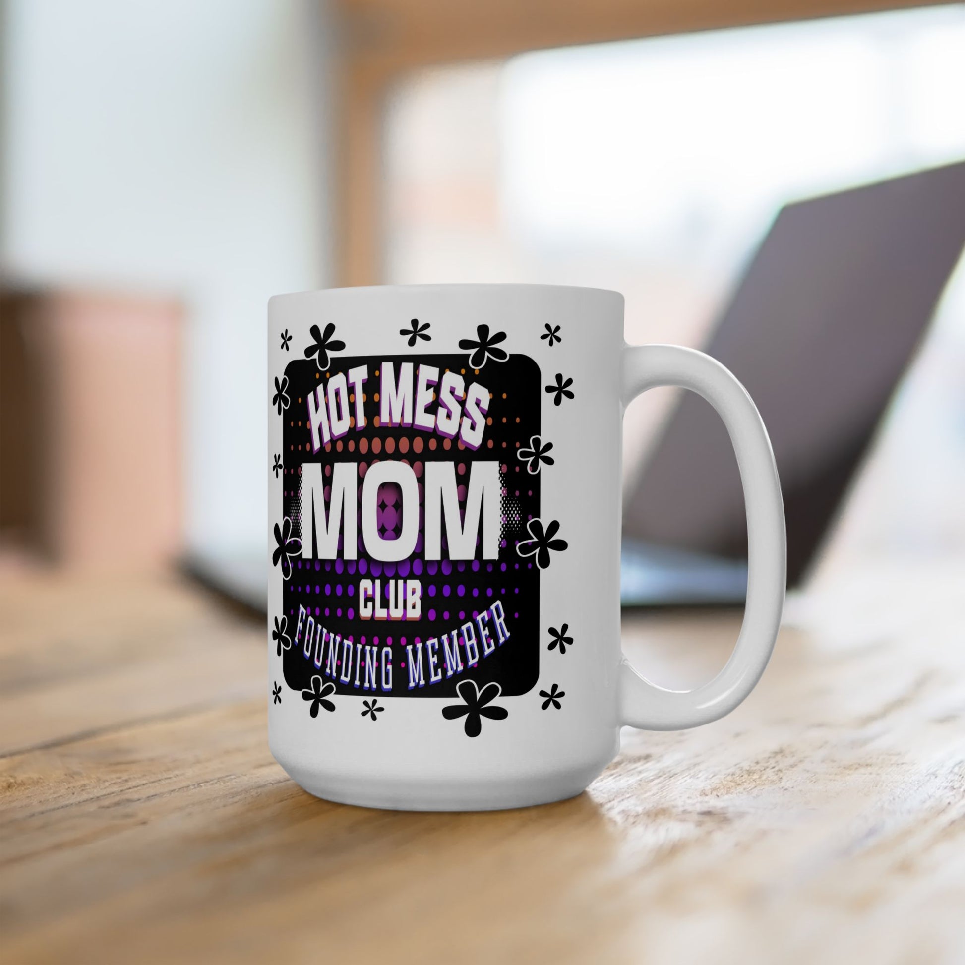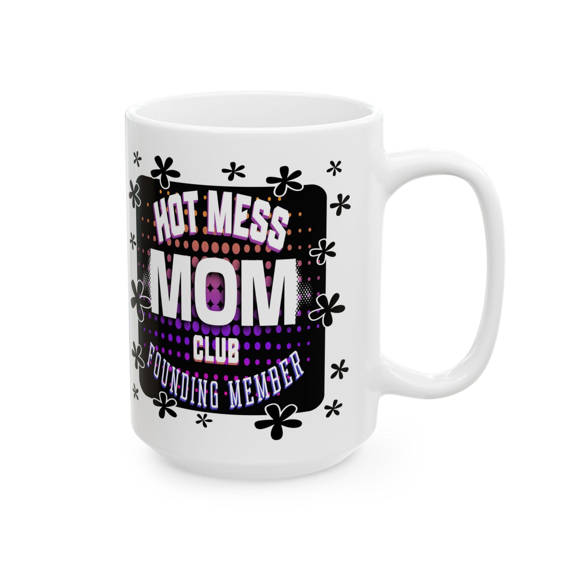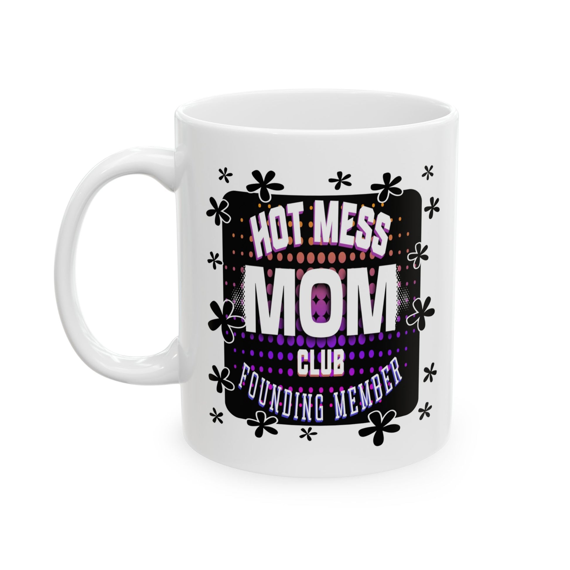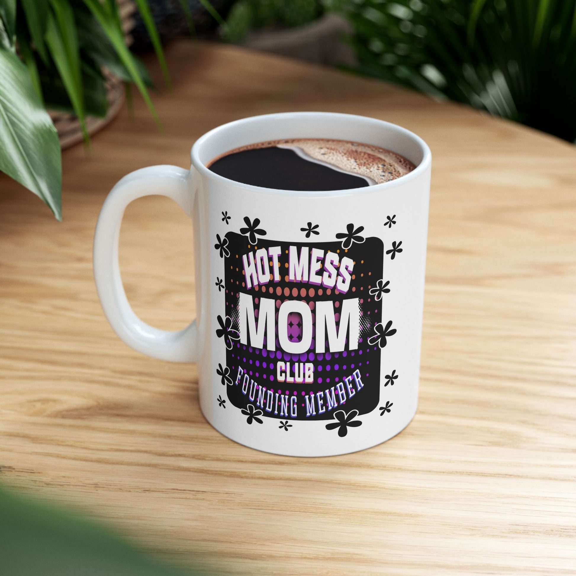 Hot Mess Mom Club Mug, Funny Ceramic Coffee Cup for Moms