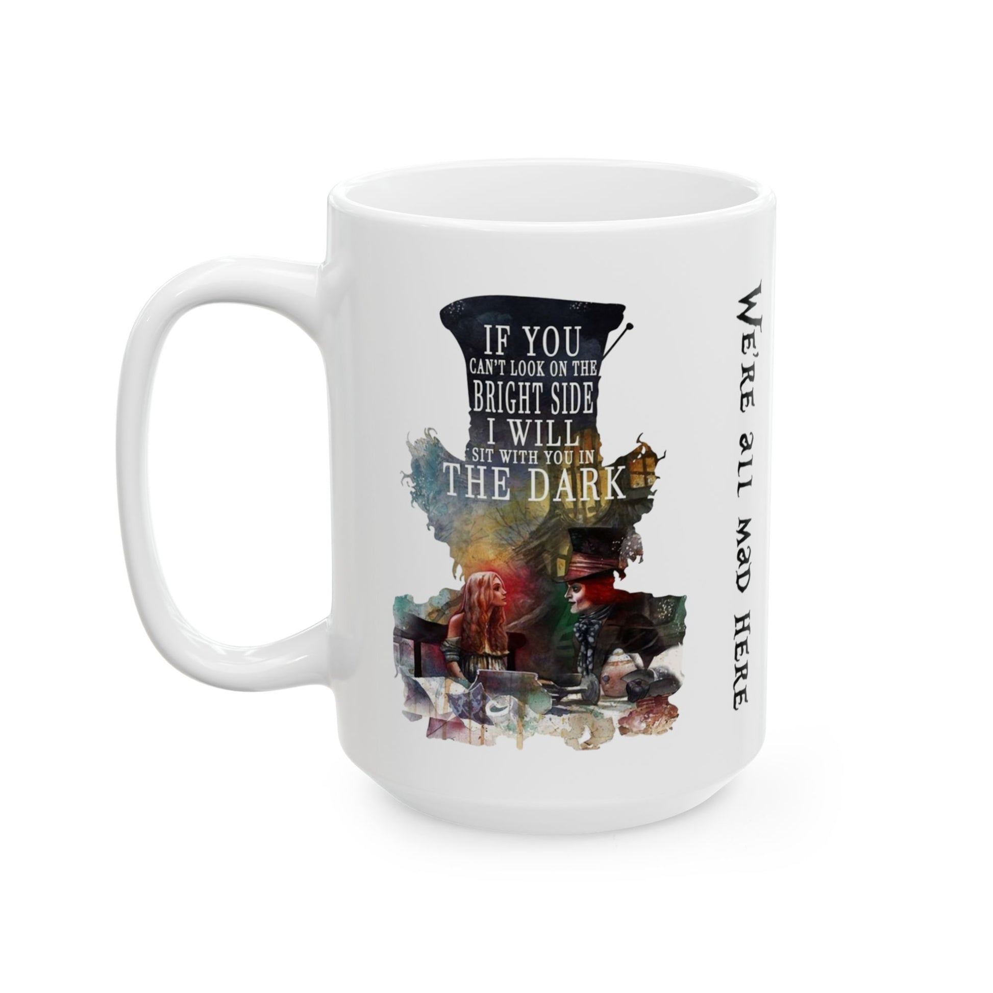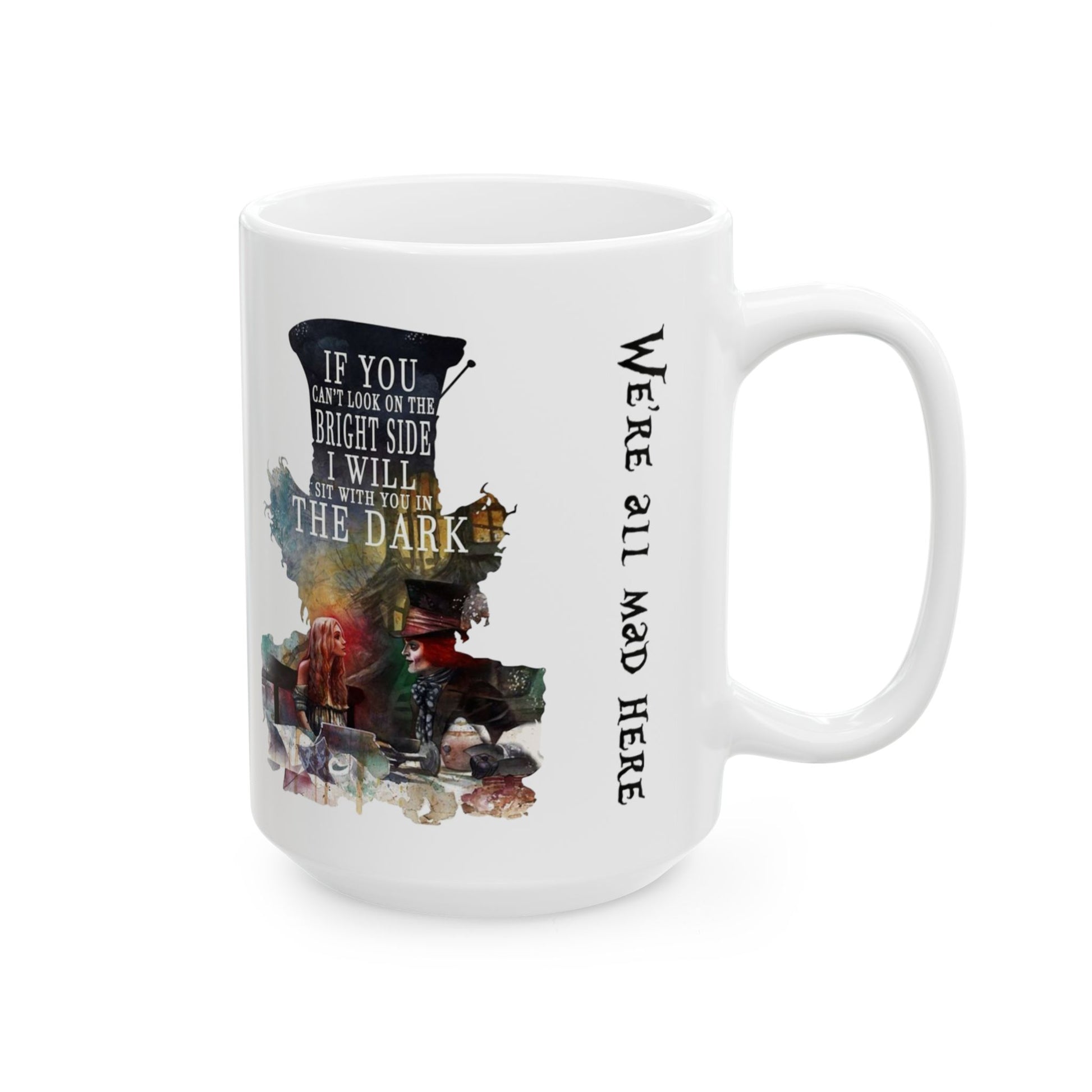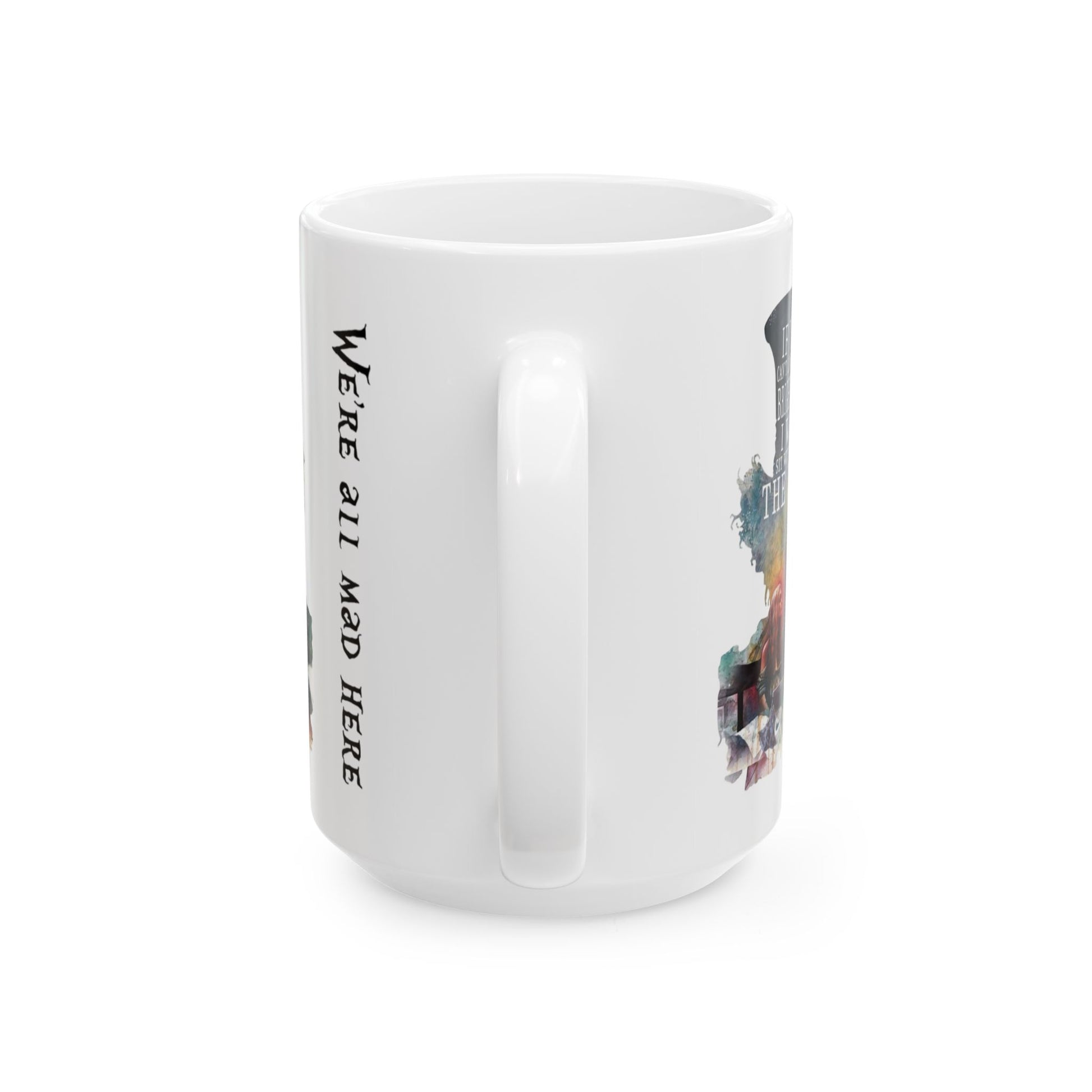 Whimsical Ceramic Mug - 15 oz Mad Hatter Coffee Mug – “We’re All Mad Here” – Alice in Wonderland Inspired Tea & Coffee Cup
