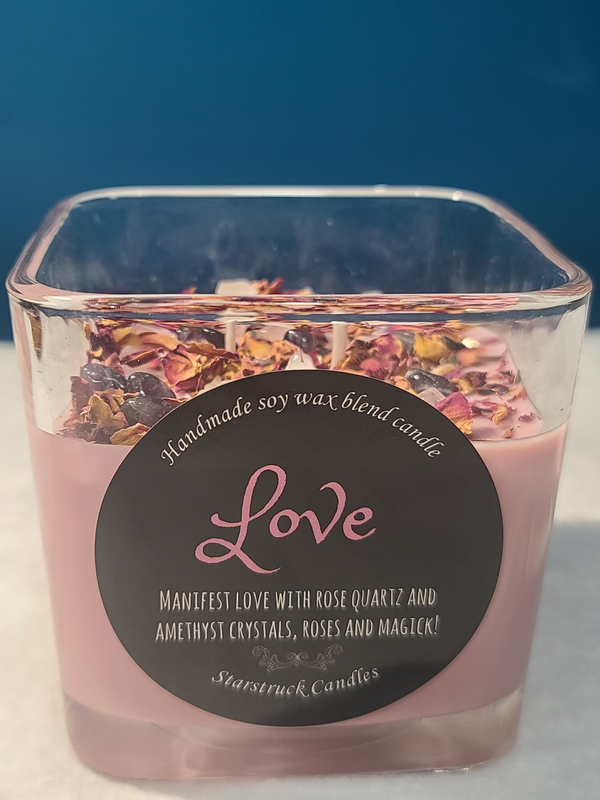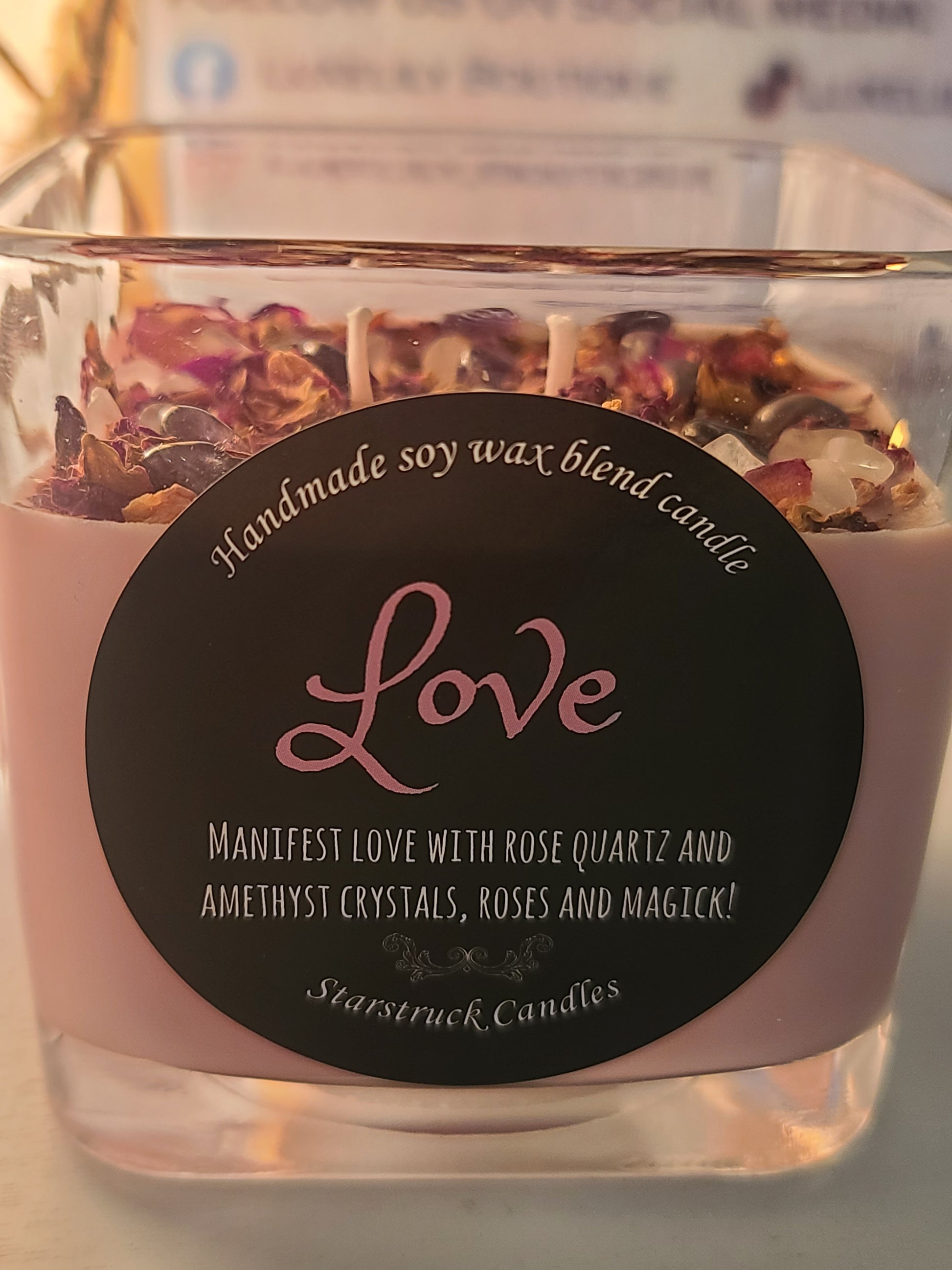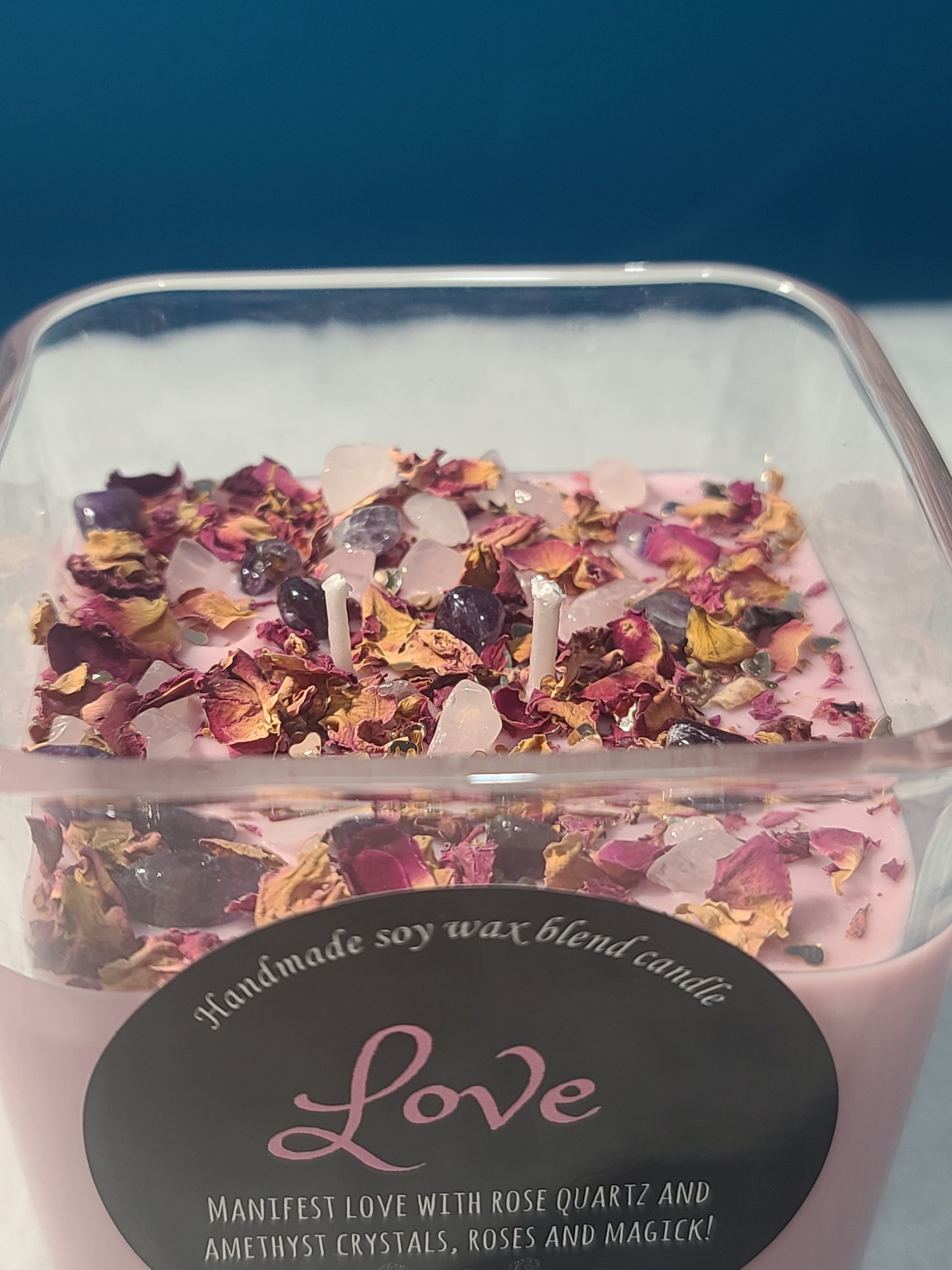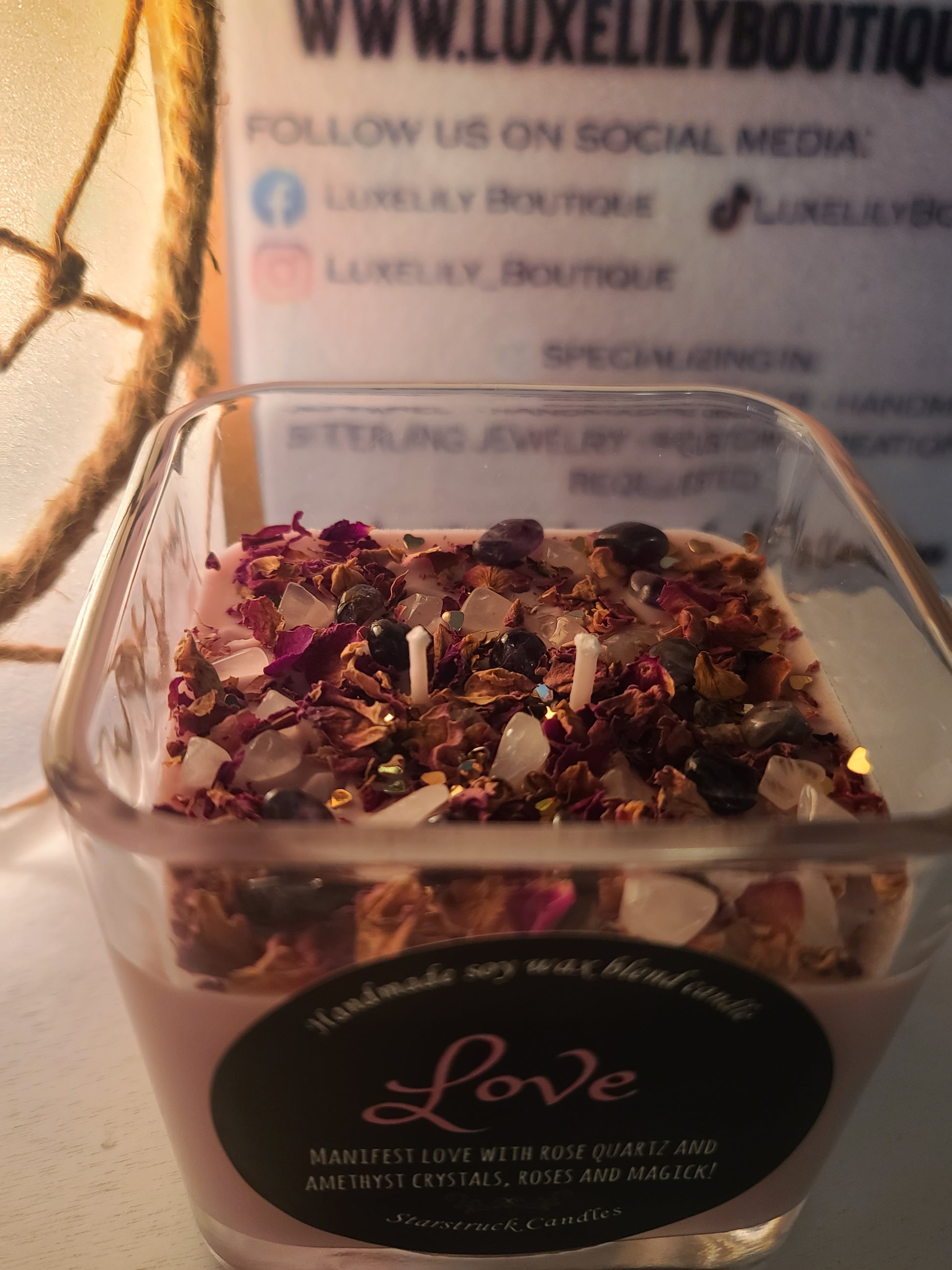 Crystal-infused Love Manifestation Intention Candle to Attract Romance and Love