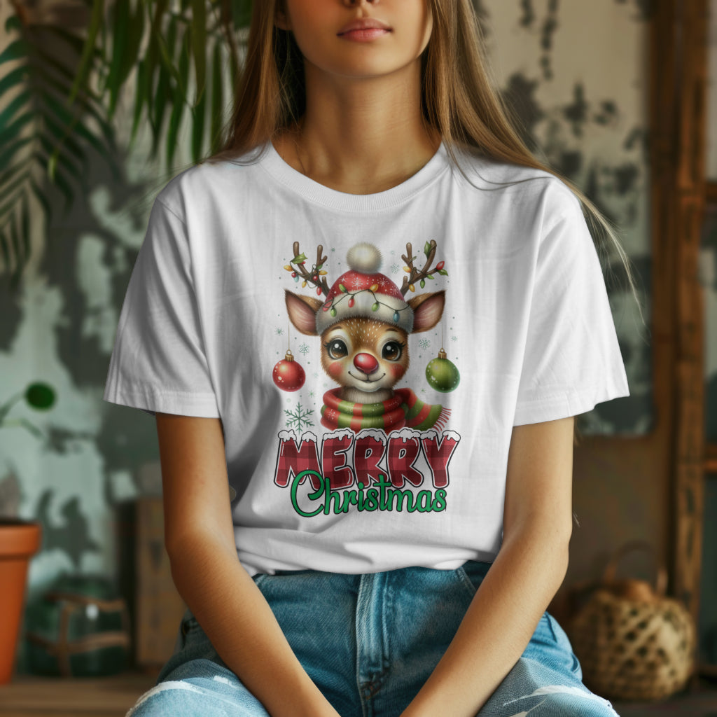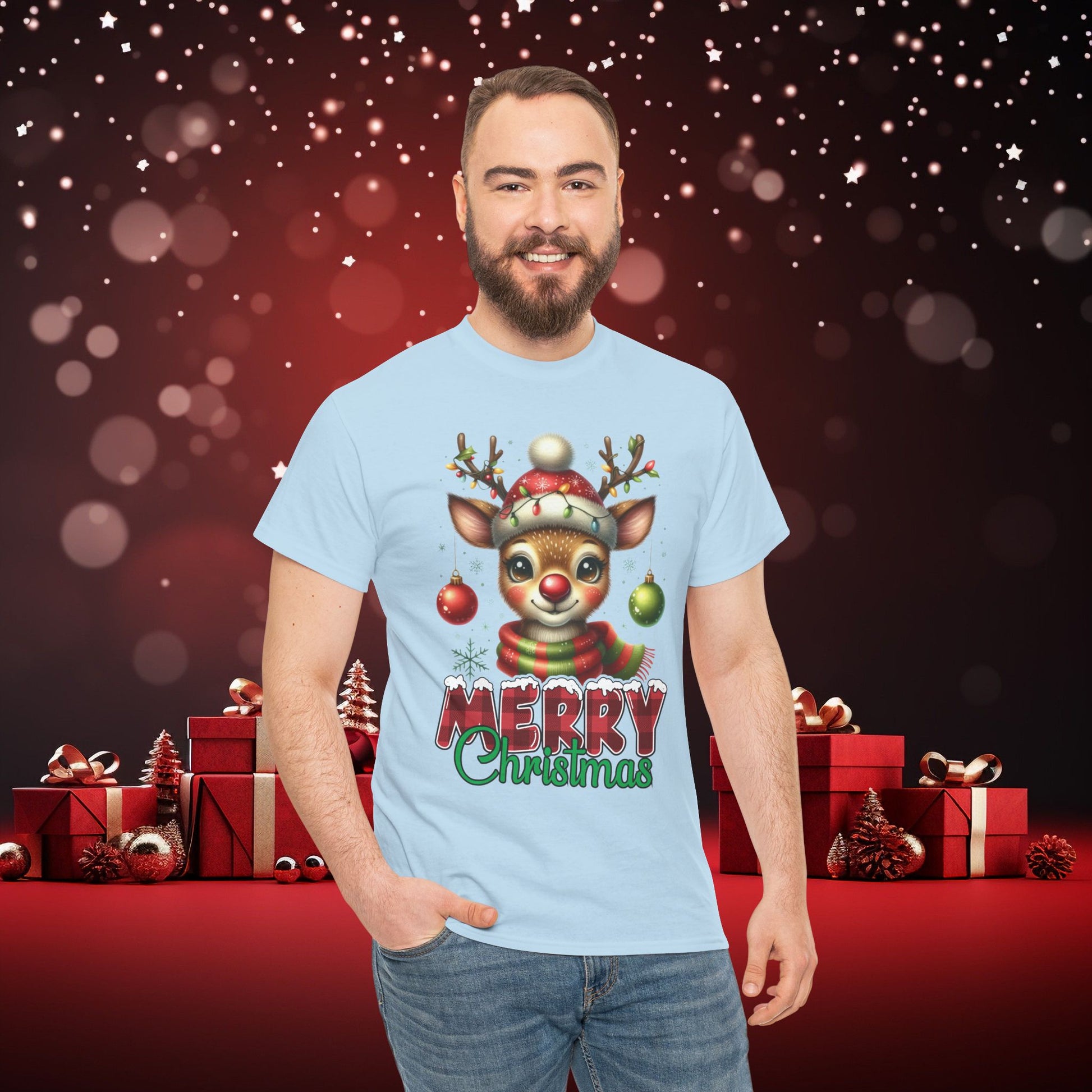 Get into the Christmas spirit with this Merry Christmas Tee featuring a cute baby deer design. Perfect for spreading holiday cheer and celebrating the festive season. This unisex heavy cotton tee is comfortable to wear and can be styled casually or dressed up for a holiday party. Ideal for anyone looking to add a touch of holiday magic to their wardrobe.