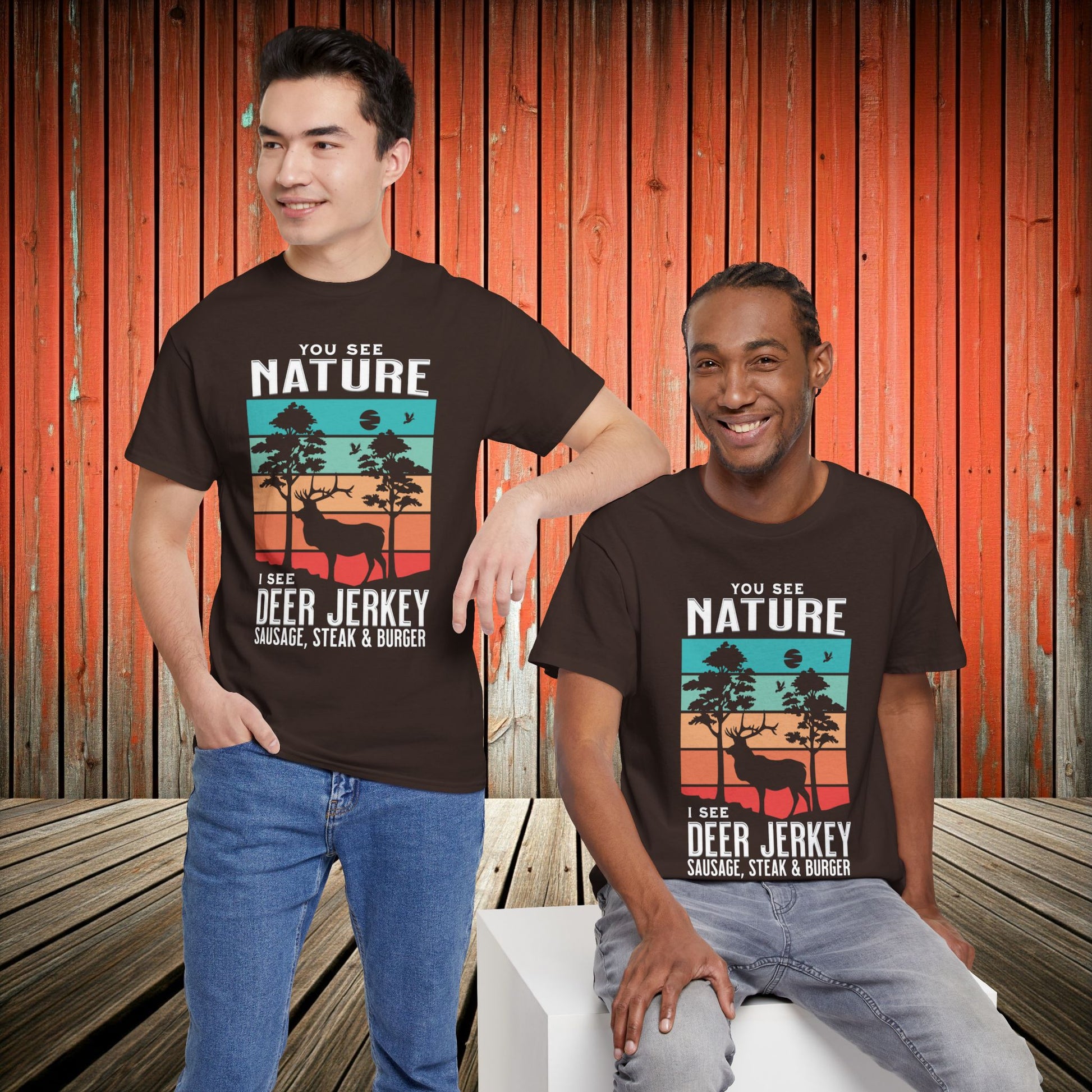 Nature vs Deer Jerky, Sausage, Steak, Burger T-Shirt