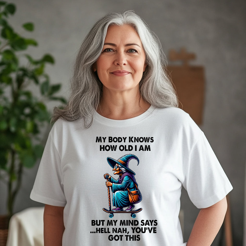 Funny Witch Themed Old Age Tee | Witch Lover's T-Shirt | Humorous Quote Tee | Getting Older With Grace Humor