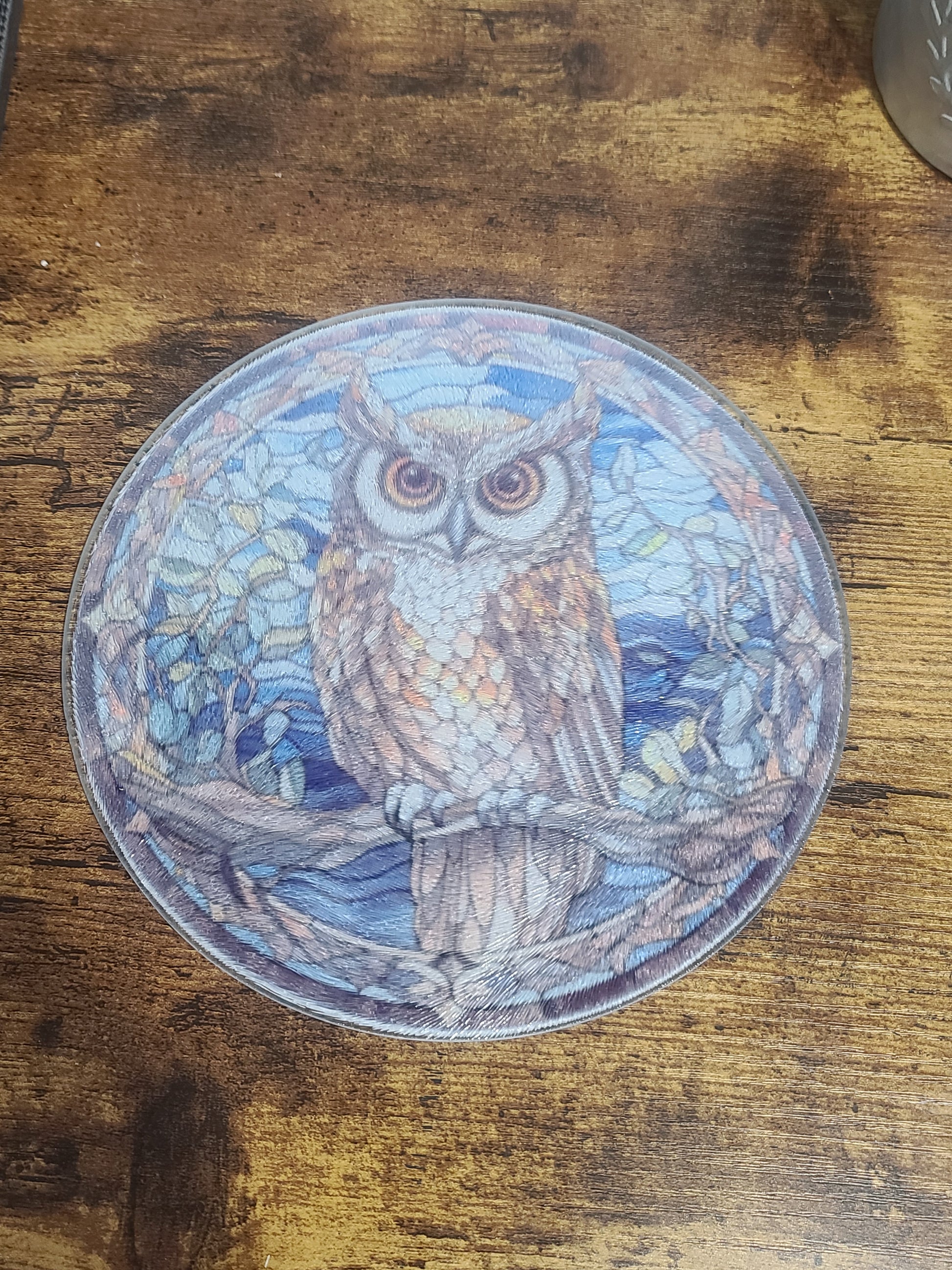 🌟 Handcrafted Owl Stained Glass Look Glass Trivet / Cutting Board 🌟