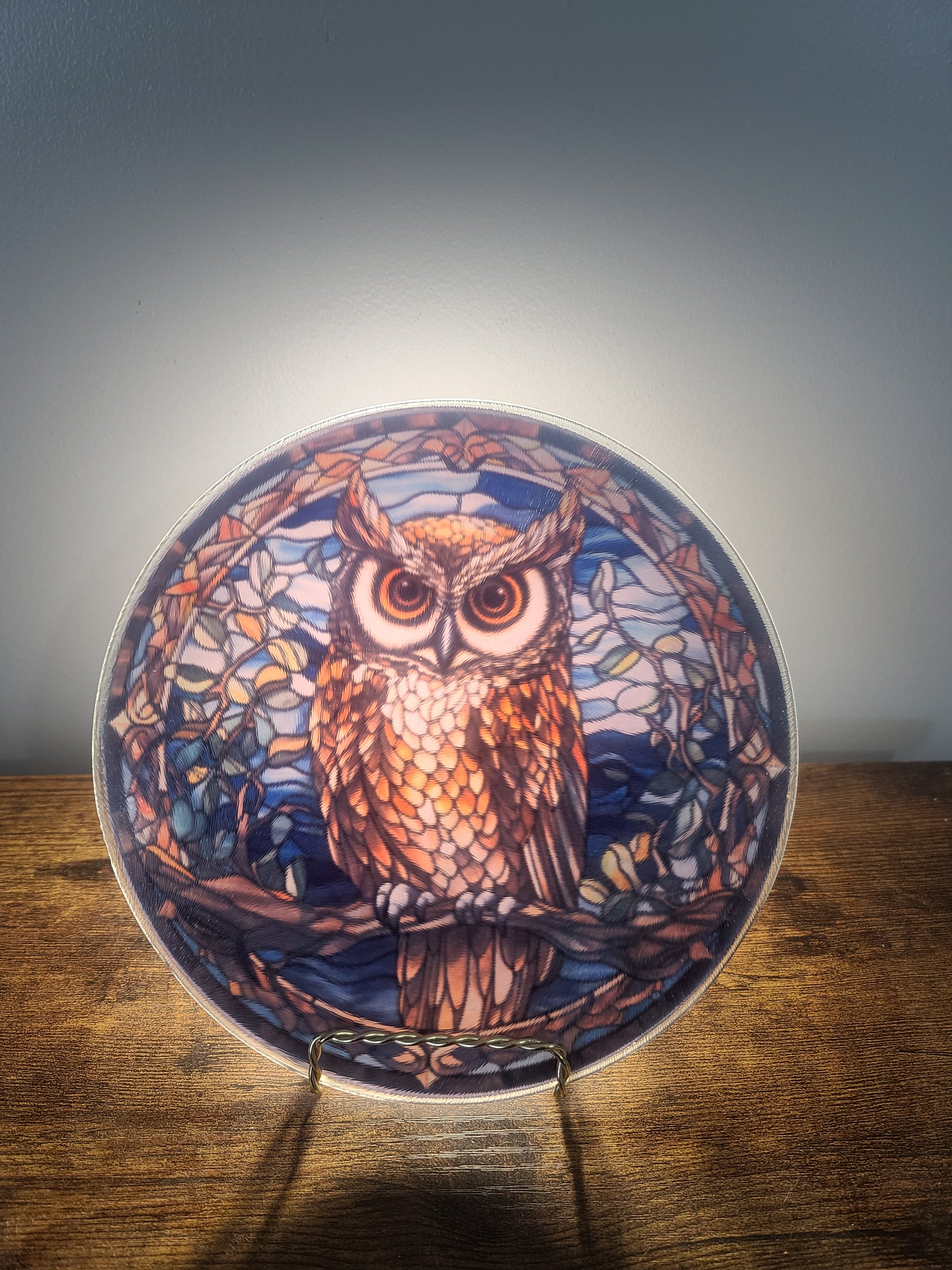 Owl Stained Glass Style Trivet Art for Home Decor - Trivet, Cutting Board, or Suncatcher
