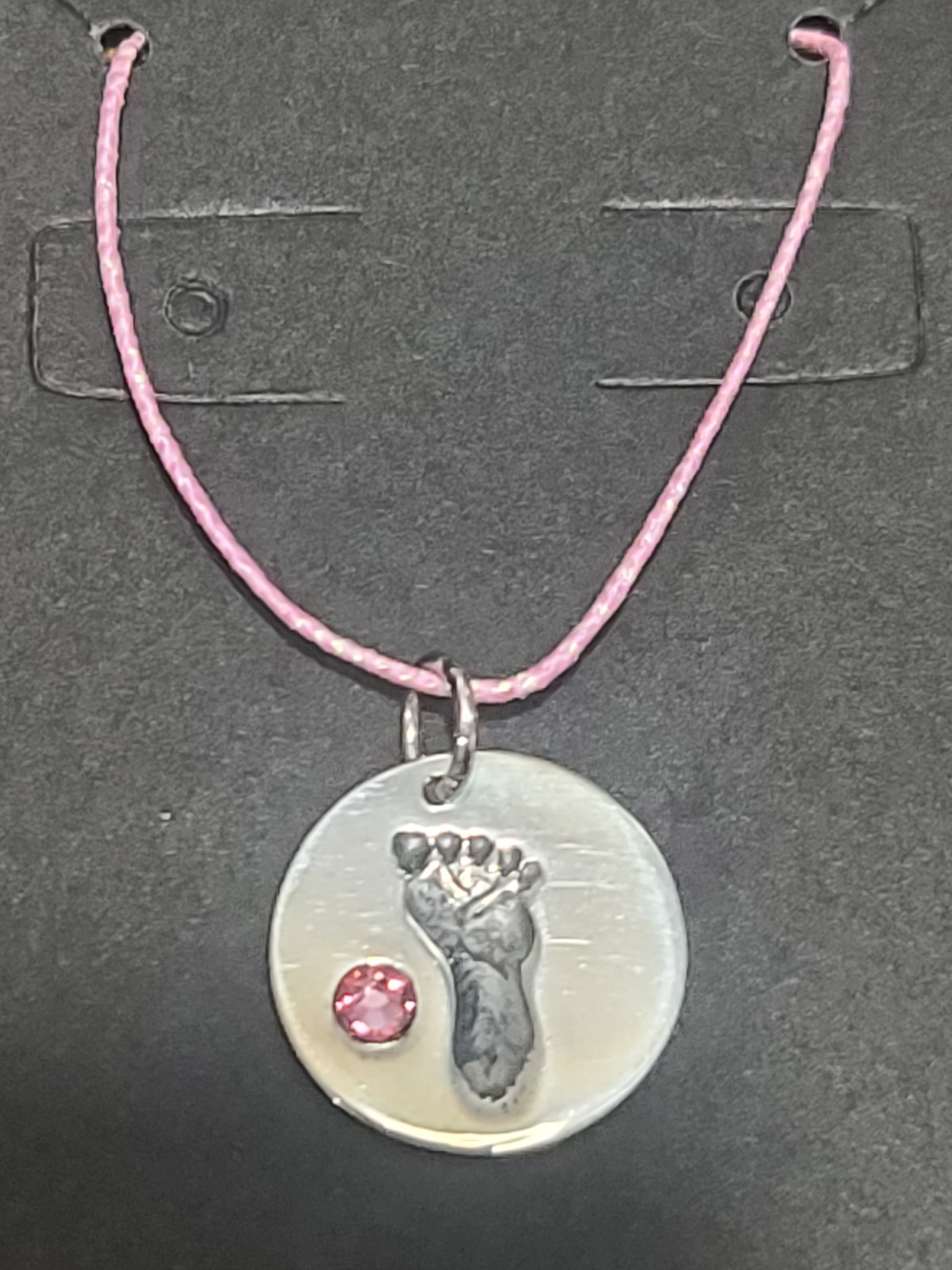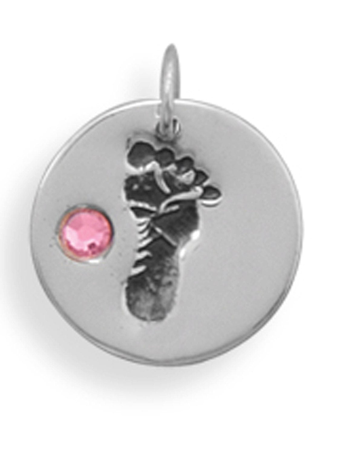 Celebrate the precious milestone of a new arrival with our Sterling Silver Baby Girl Footprint Charm with Pink Crystal. Crafted from high-quality .925 sterling silver, this charming charm features a sweet baby footprint design engraved on a disc, adorned with a dazzling 2.5mm pink crystal for a pop of color. Whether for a charm bracelet, necklace, or as a thoughtful keepsake, this charm captures the joy and love surrounding a new baby girl.