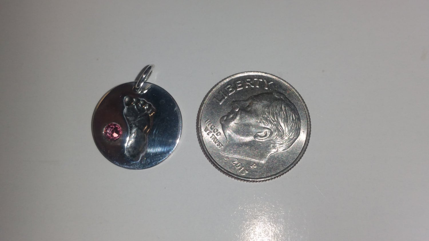 Sterling Silver Baby Girl Footprint Charm with Pink Crystal