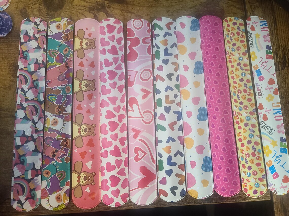 Package Includes: 8 or 10 assorted slap bracelets (designs vary)—perfectly sized for little wrists and big imaginations.