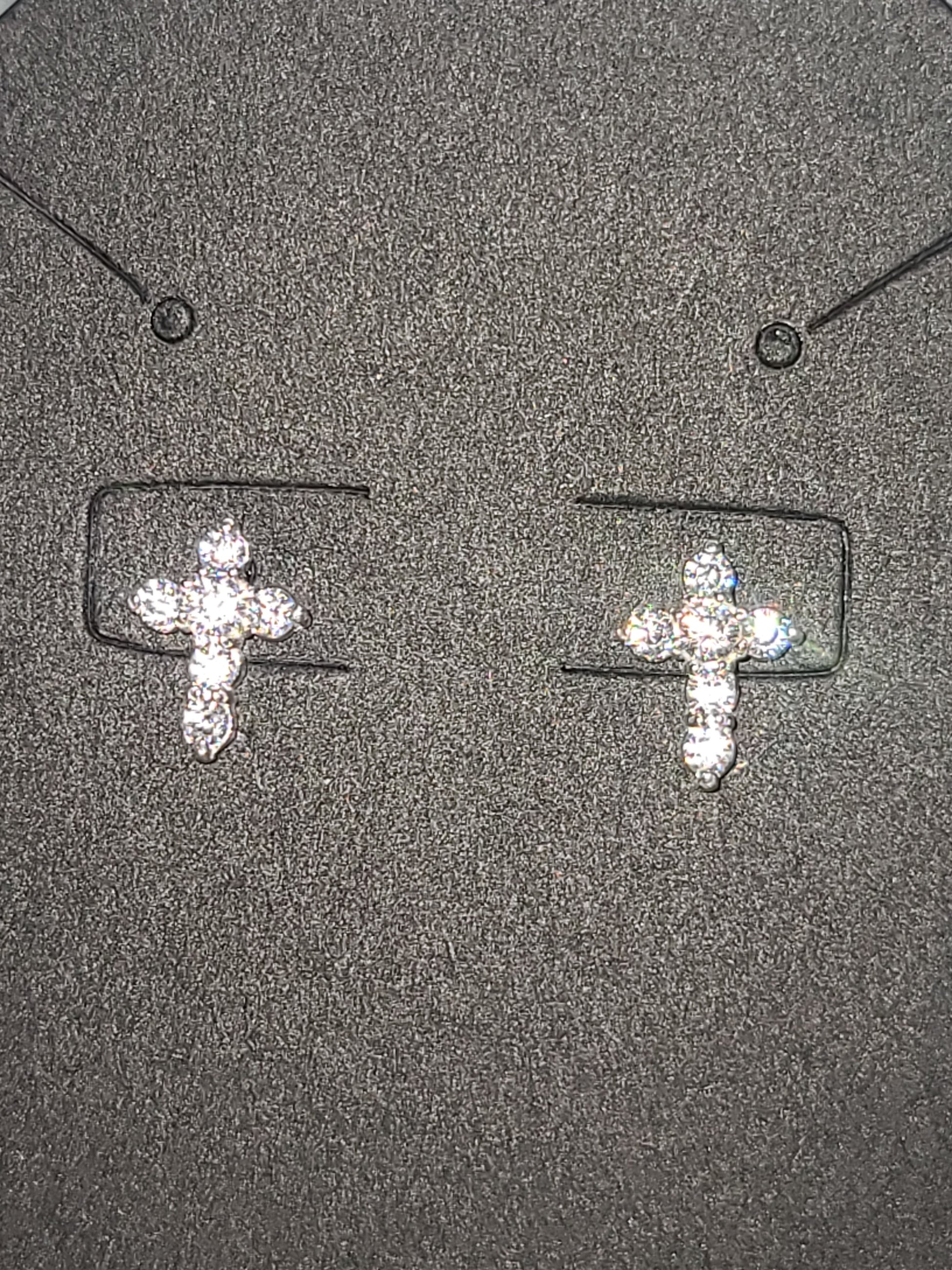Sterling Silver Miniature CZ Cross Studded Earrings with Six 2mm CZs