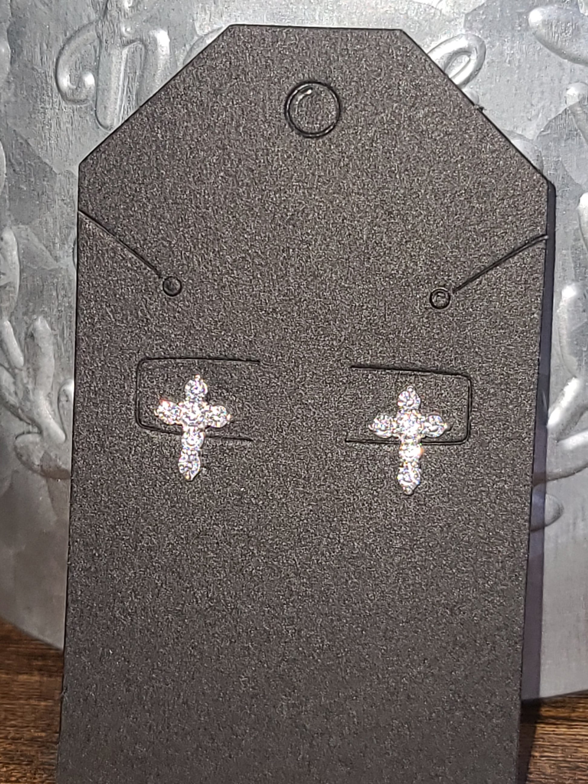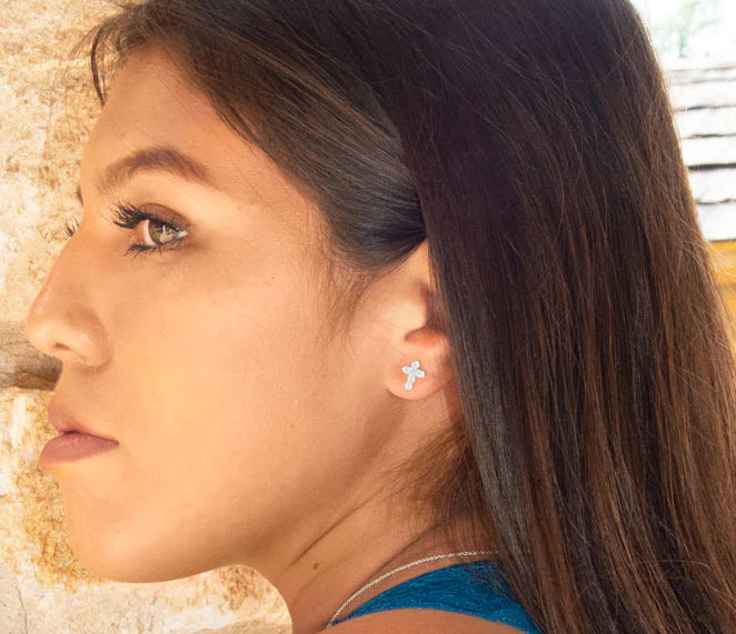 Elevate your everyday style with our Small Shiny Sterling Silver CZ Cross Earrings. Measuring 8mm x 10.2mm, these elegant earrings feature sparkling 2mm cubic zirconia stones that add a touch of radiant shimmer. Crafted from .925 sterling silver, they offer both durability and a stunning shine.
