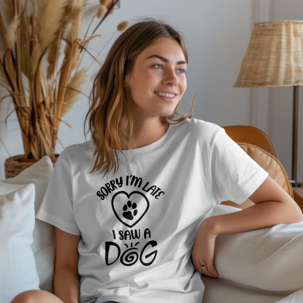Sorry I'm Late, I Saw a Dog T-Shirt – Funny Dog Lover Tee for Men & Women