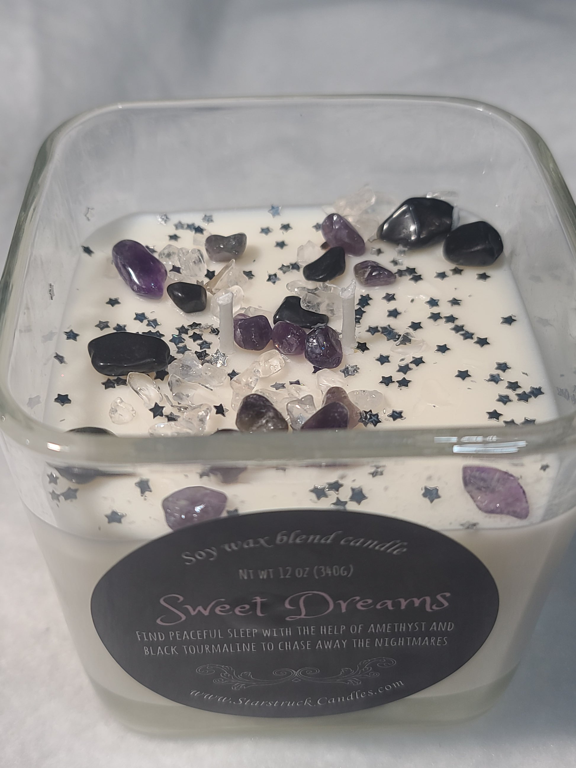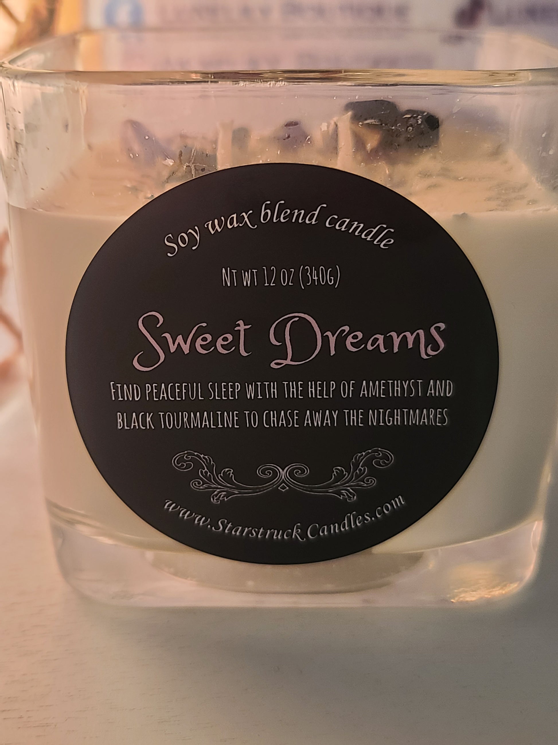 Lavender Infused Sweet Dreams Soy Crystal Intention Candle for Deep Sleep and Relaxation