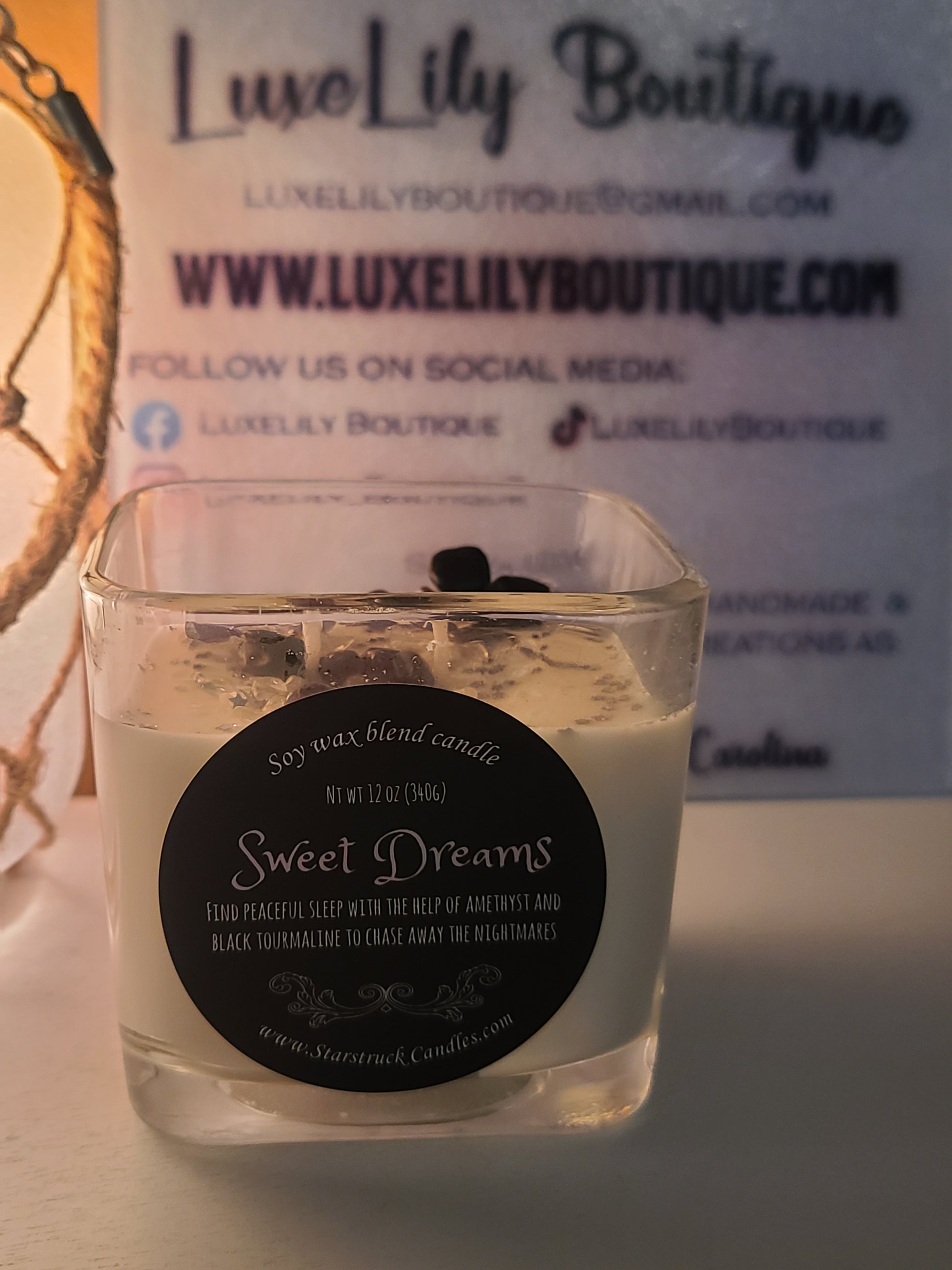 Drift into a state of deep relaxation, restful sleep, and peaceful serenity with the Lavender Infused Sweet Dreams Soy Crystal Intention Candle. Hand-poured with natural soy wax, infused with calming lavender essential oil, and embedded with a genuine amethyst crystal, this candle is designed to promote stress relief, meditation, and soothing nighttime rituals.