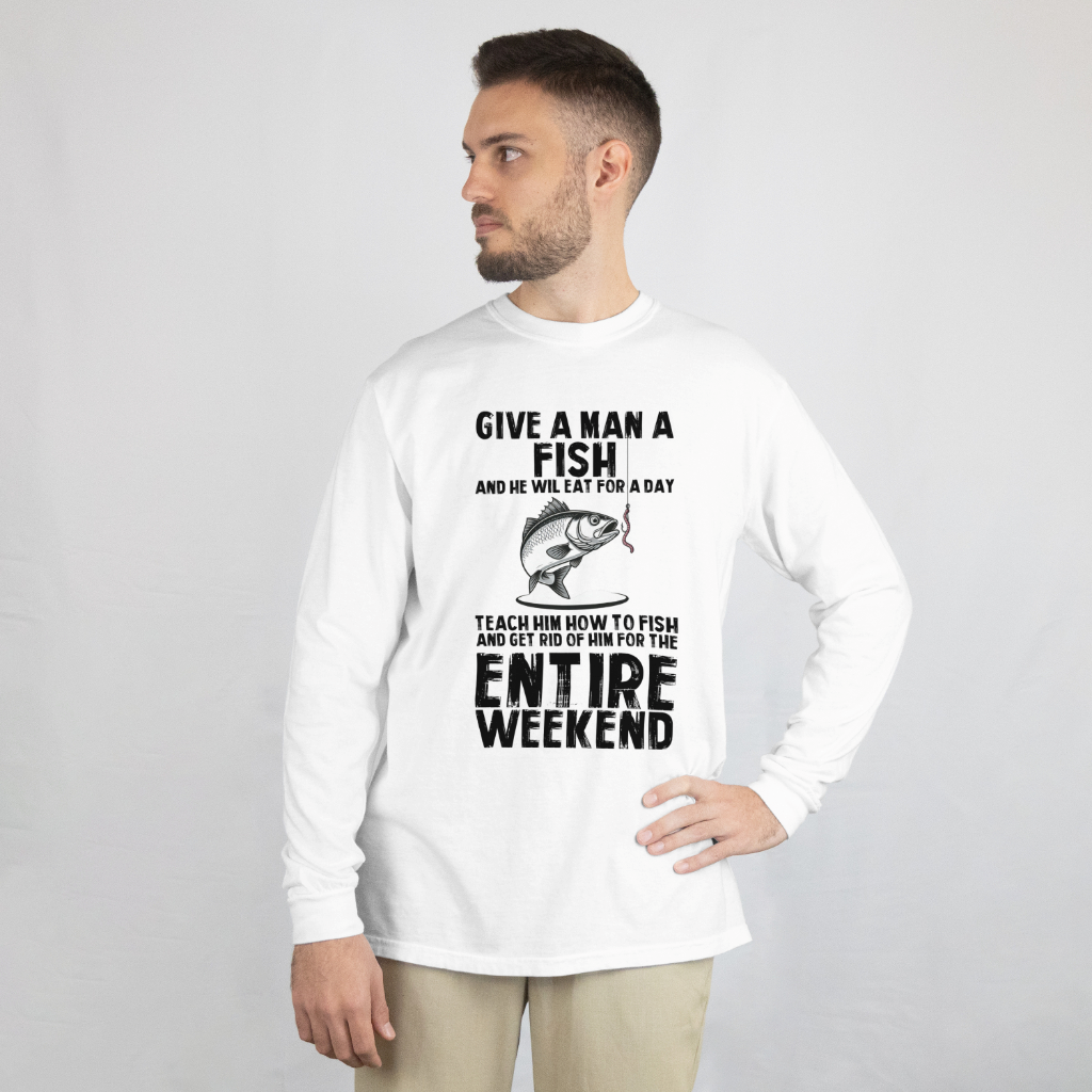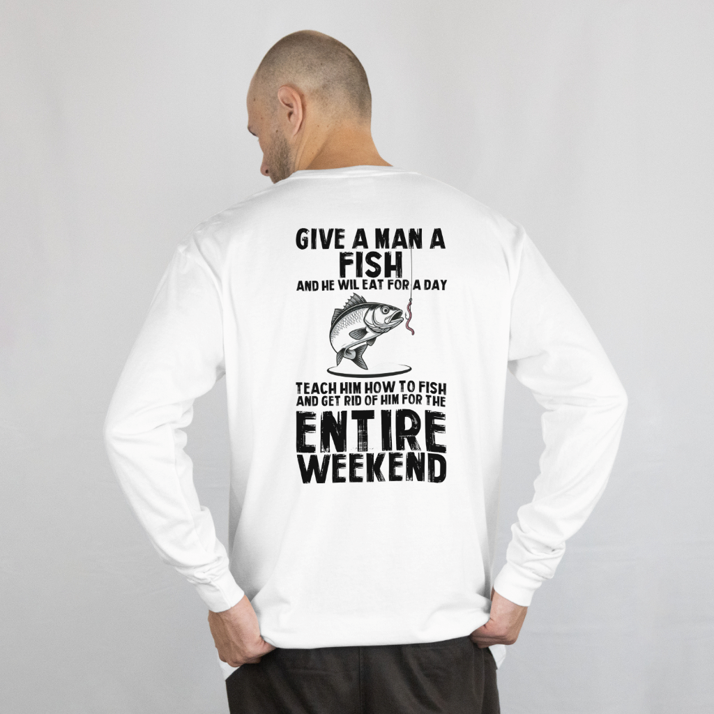 Teach a Man to Fish Funny Tee - L/S, SS Front or Back Graphic (Option #2)