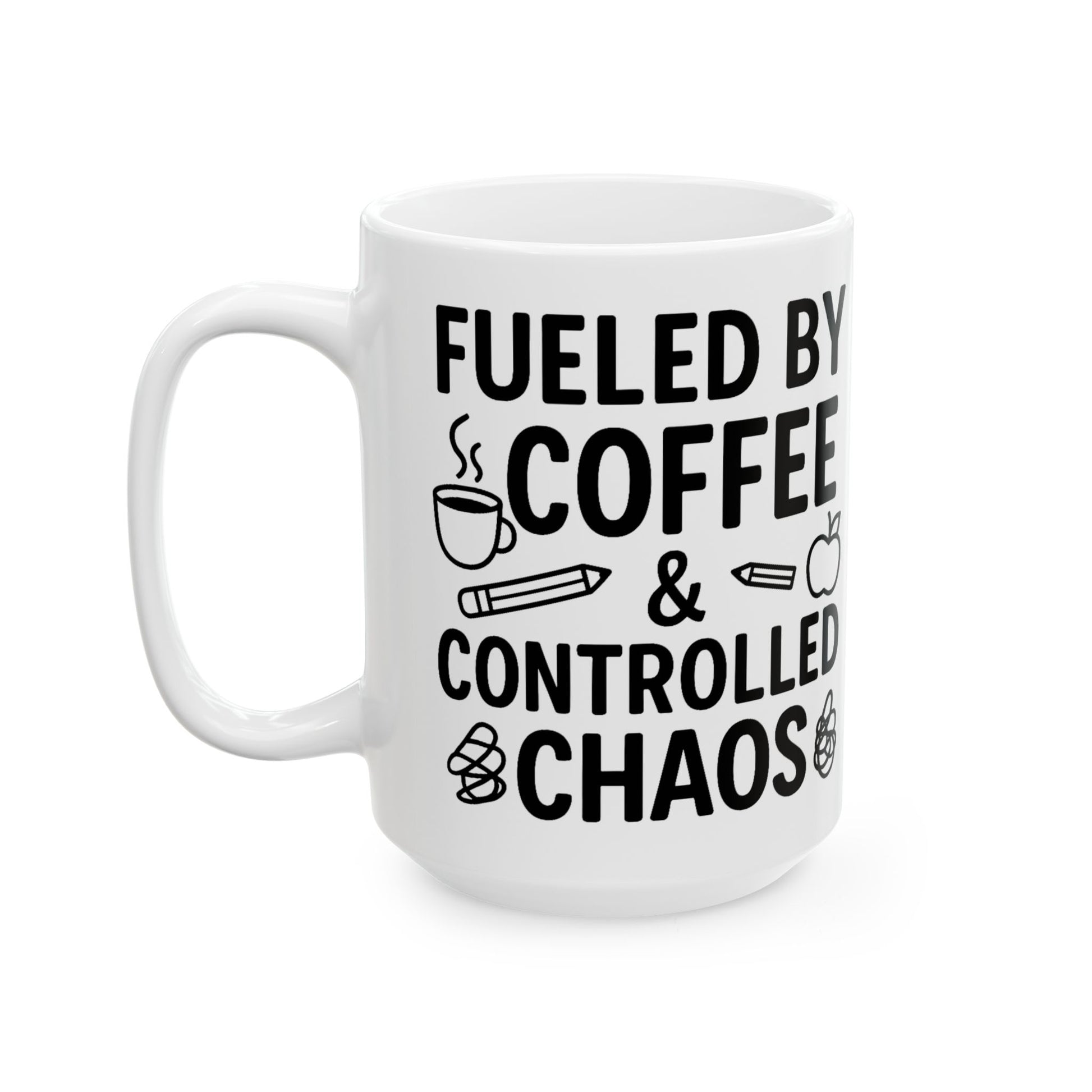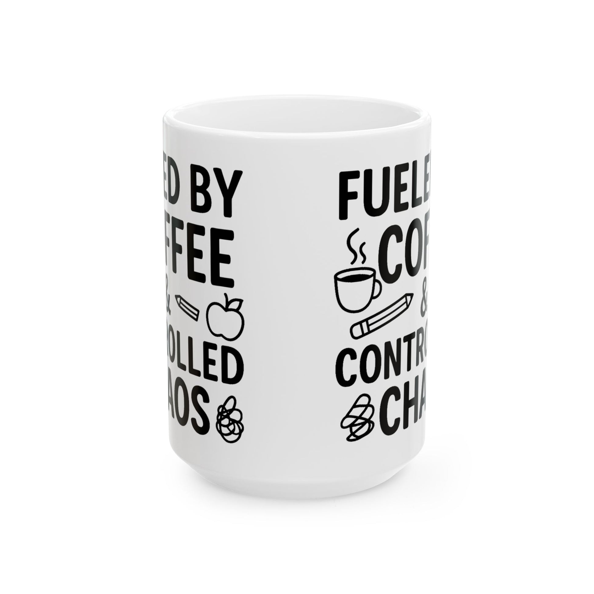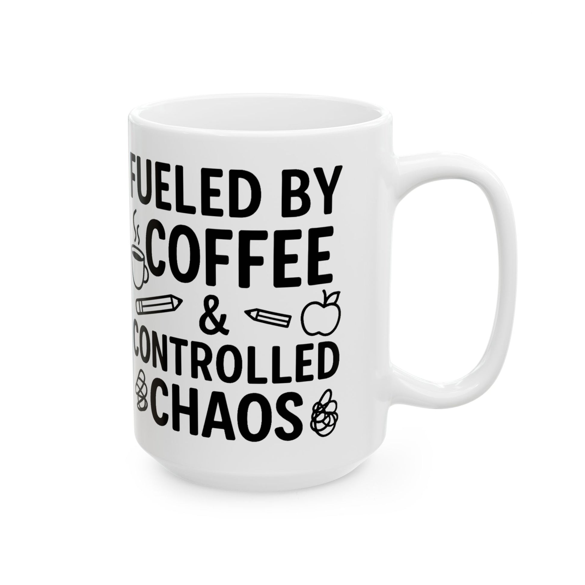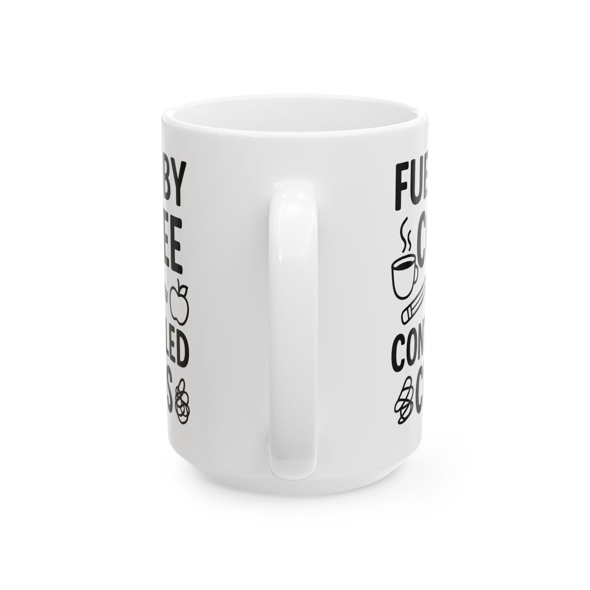 Fueled by Coffee & Controlled Chaos Teacher Mug – Funny Teacher Coffee Cup, 15 Oz