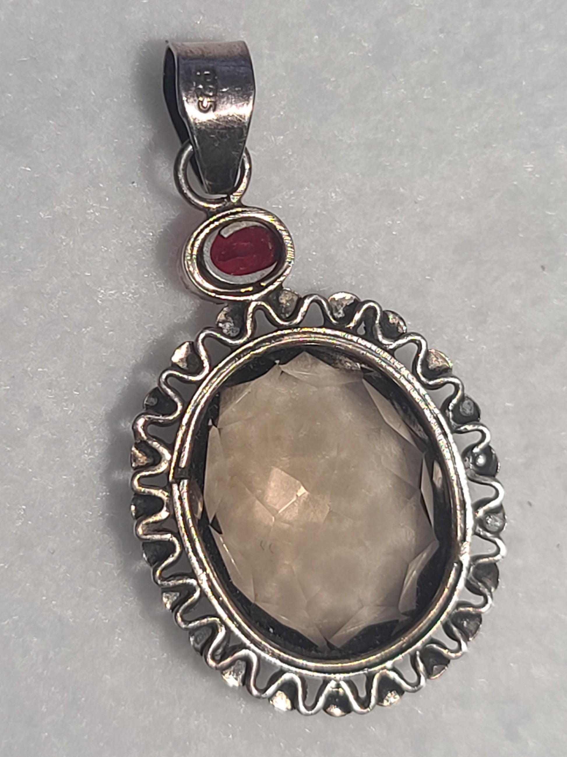 Vintage Sterling Silver, Smoky Quartz, and Garnet Pendant